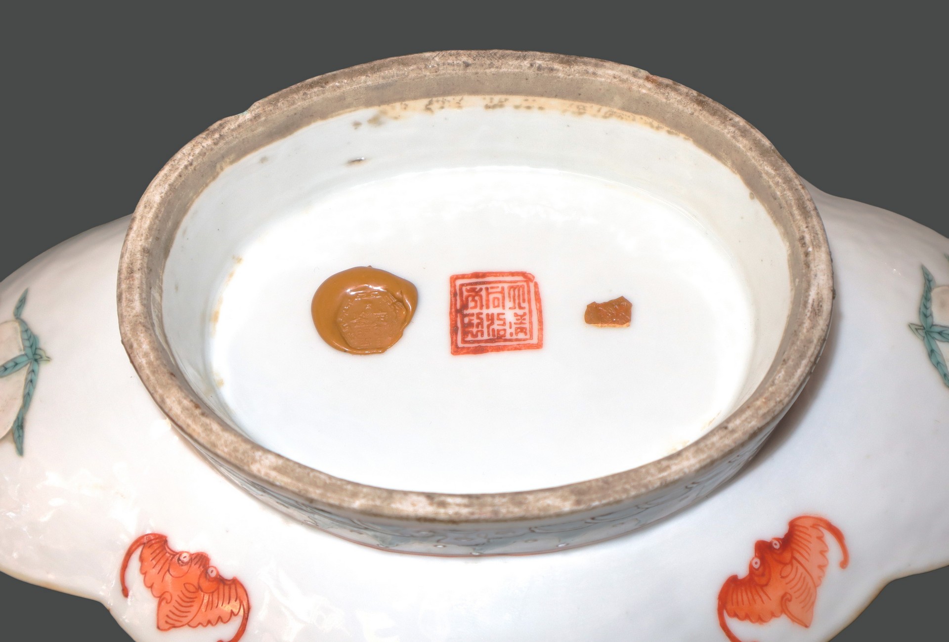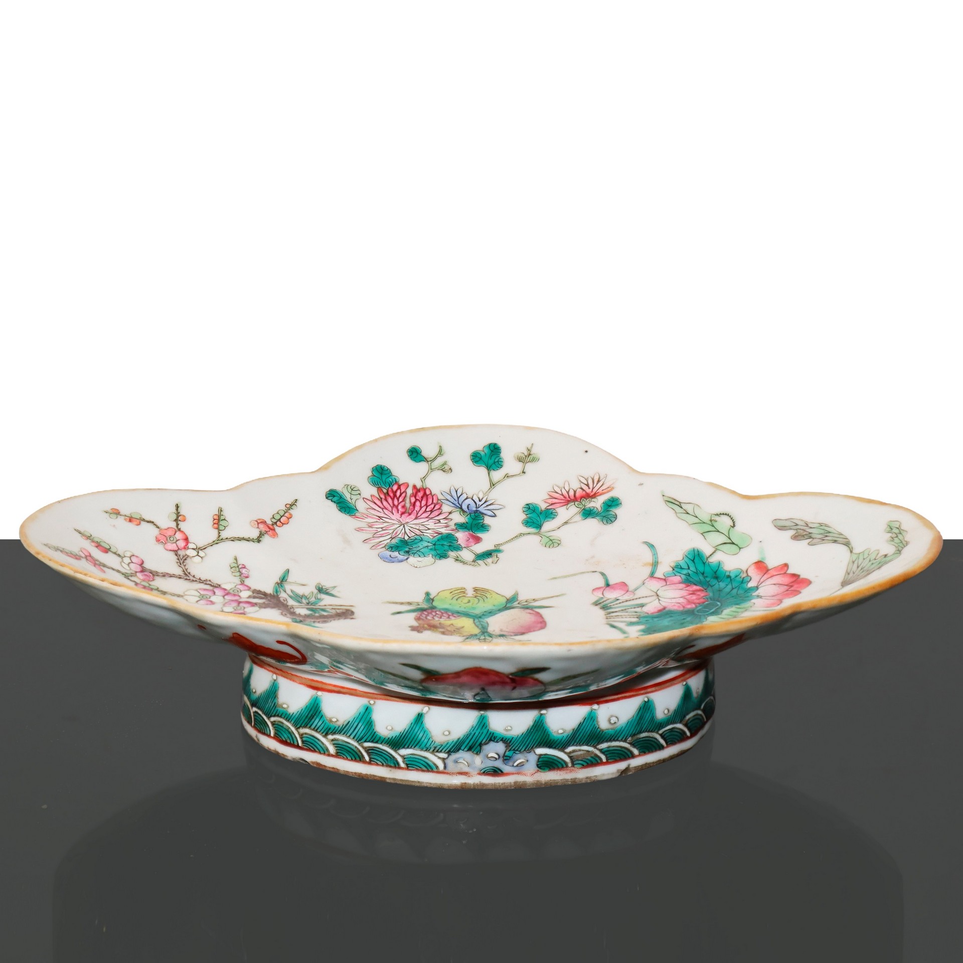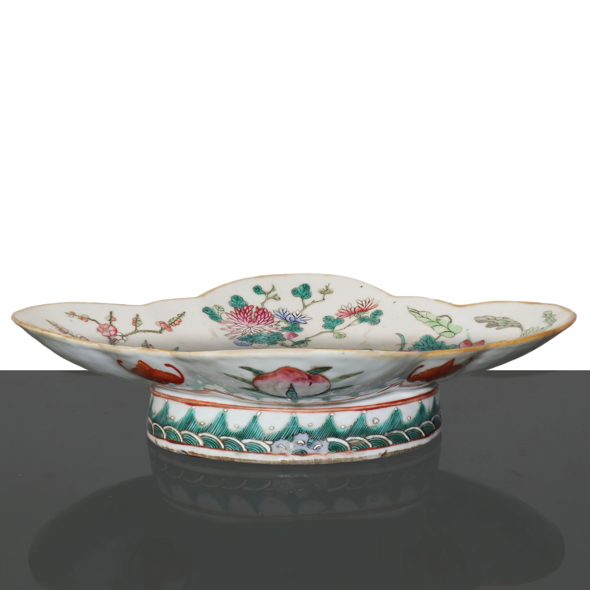 Centrotavola cinese con motivi floreali e di melograni H cm 9, Lunghezza cm 29x 22