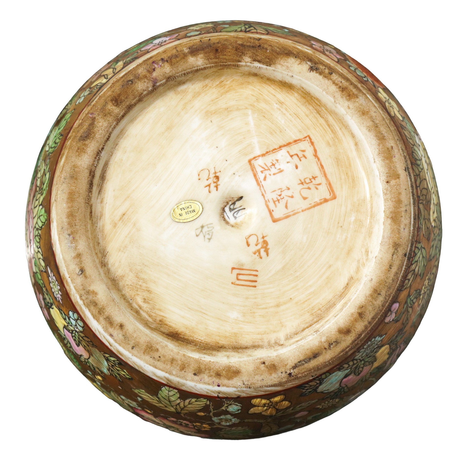 Coppia di poutiche cinesi con decori floreali in smalti policromi a rilievo h cm 26