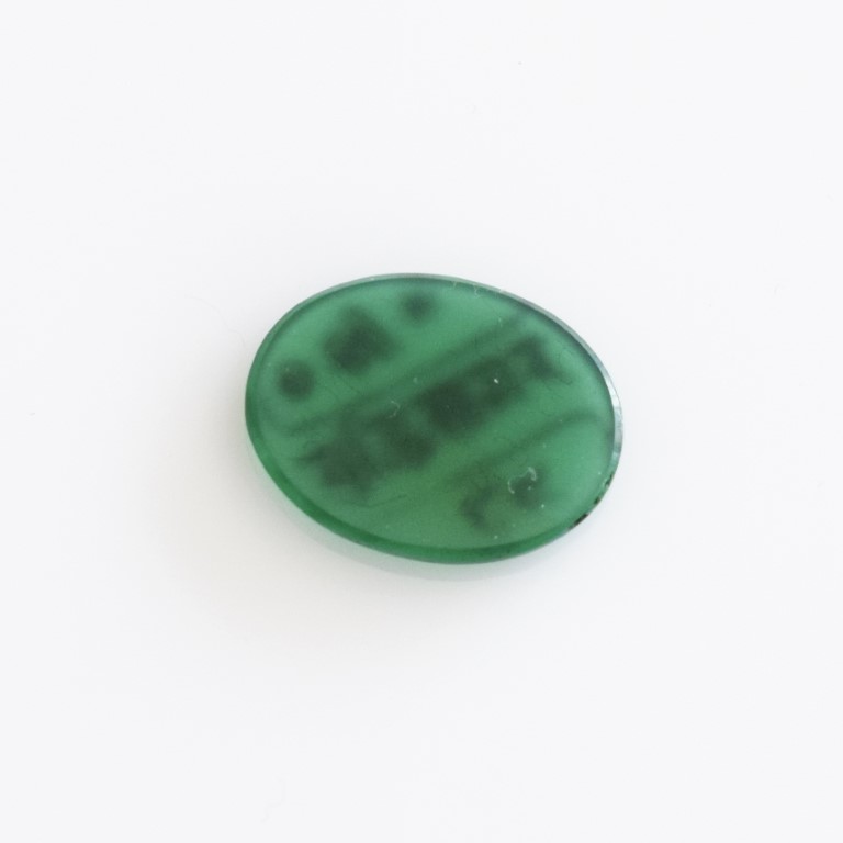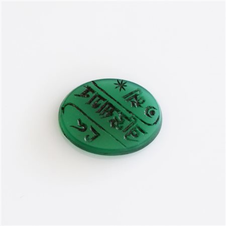Amuleto in vetro verde inciso