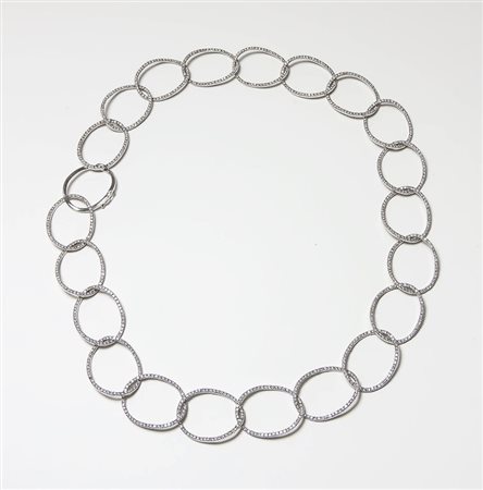COLLANA IN ORO BIANCO E DIAMANTI realizzata come una catena con maglie...