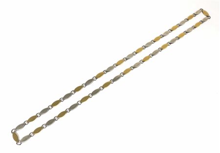 COLLANA IN ORO BIANCO E GIALLO Van Cleef & Arpels realizzata come una teoria di ogive alternate in oro bianco e giallo gr 74 Reca punzone: VCA NY 18K 4V48 1-2 WHITE AND YELLOW NECKLACE, VAN CLEEF & ARPELS