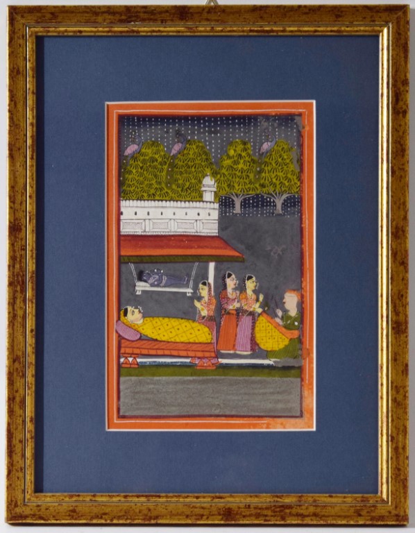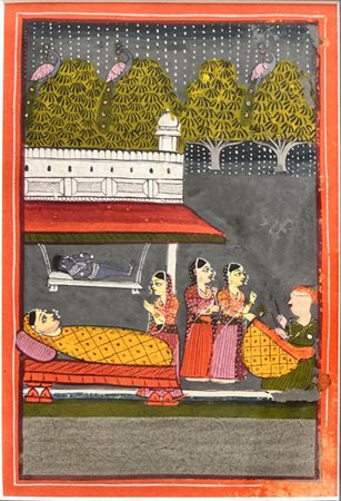 Pigmenti su carta, il dipinto raffigura l'annunciazione della nascita di Krishna. Provenienza: Collezione privata Toscana.