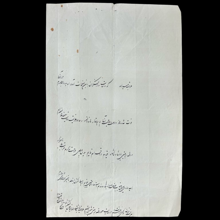 Sheiki figlio del defunto Mashadi Karim. Testo in persiano