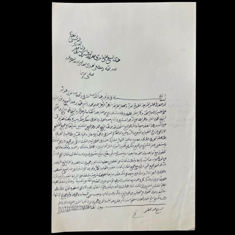 di palme, indirizzato a Abdullah Ibn Mustafa Efendi, datata