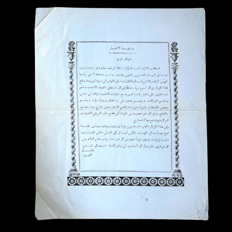 il primo giornale in arabo pubblicato a Beirut, e le sue
