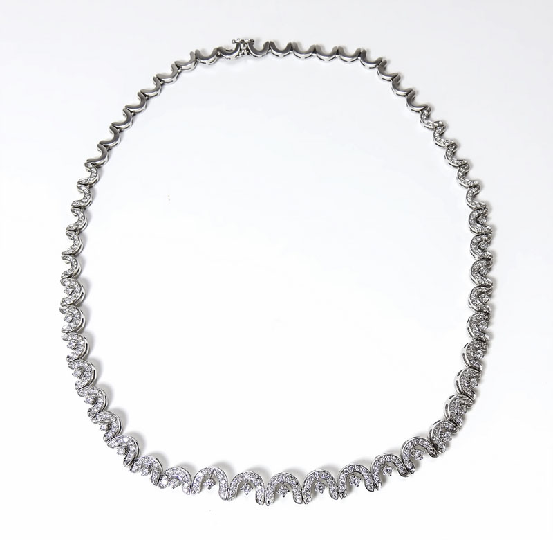 COLLIER IN ORO BIANCO E DIAMANTI realizzato come una teoria di piccoli ferri...