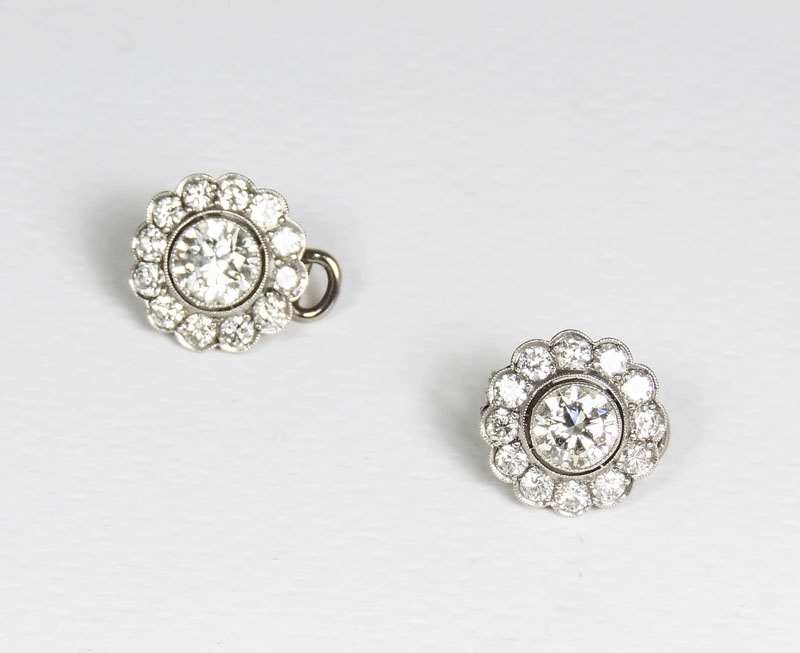 PAIO DI ORECCHINI IN PLATINO E DIAMANTI realizzati come margherite in diamanti taglio brillante tondo diamanti centrali ct 1,0 circa ciascuno PAIR OF DIAMONDS EARRINGS
