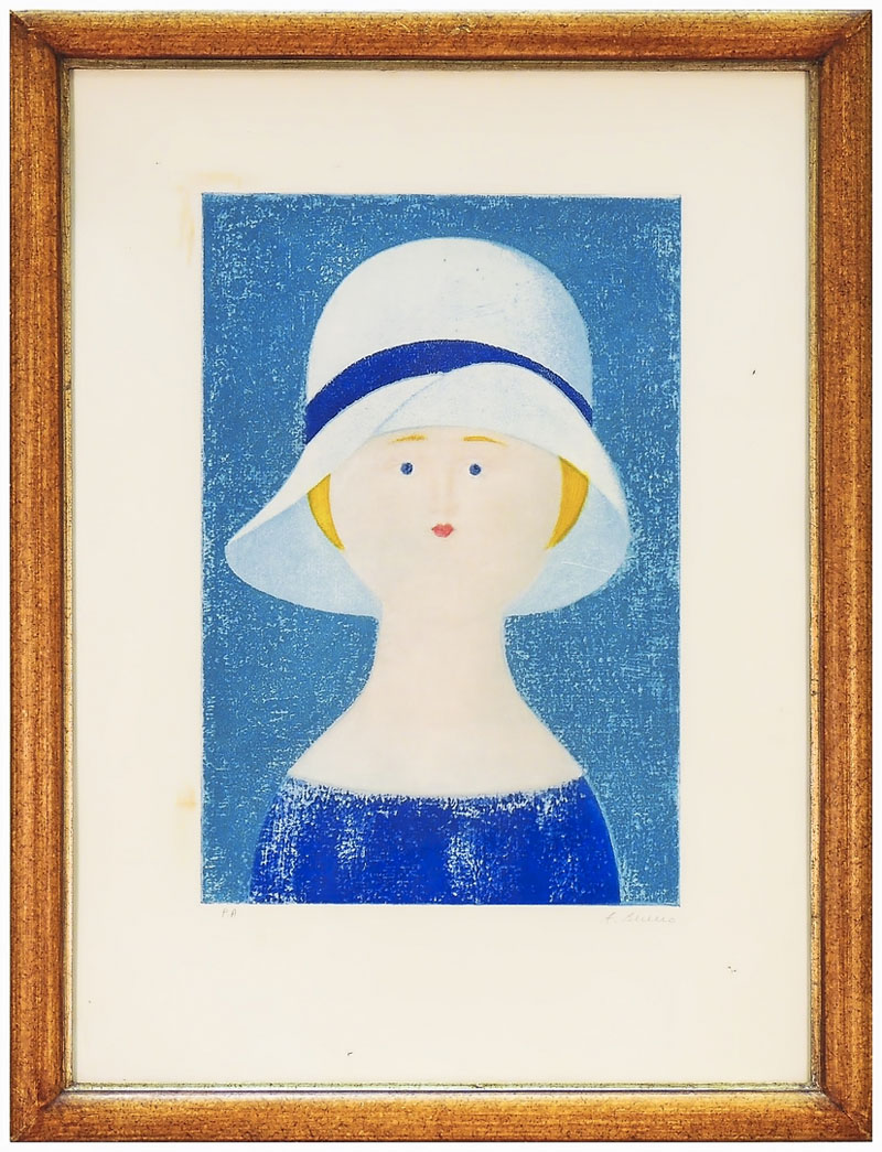 ANTONIO BUENO (1918-1984) Ritratto di donna con cappello acquatinta, prova d'autore, firmata, in cornice cm 48x31 Portrait of a Woman with Hat, aquatint