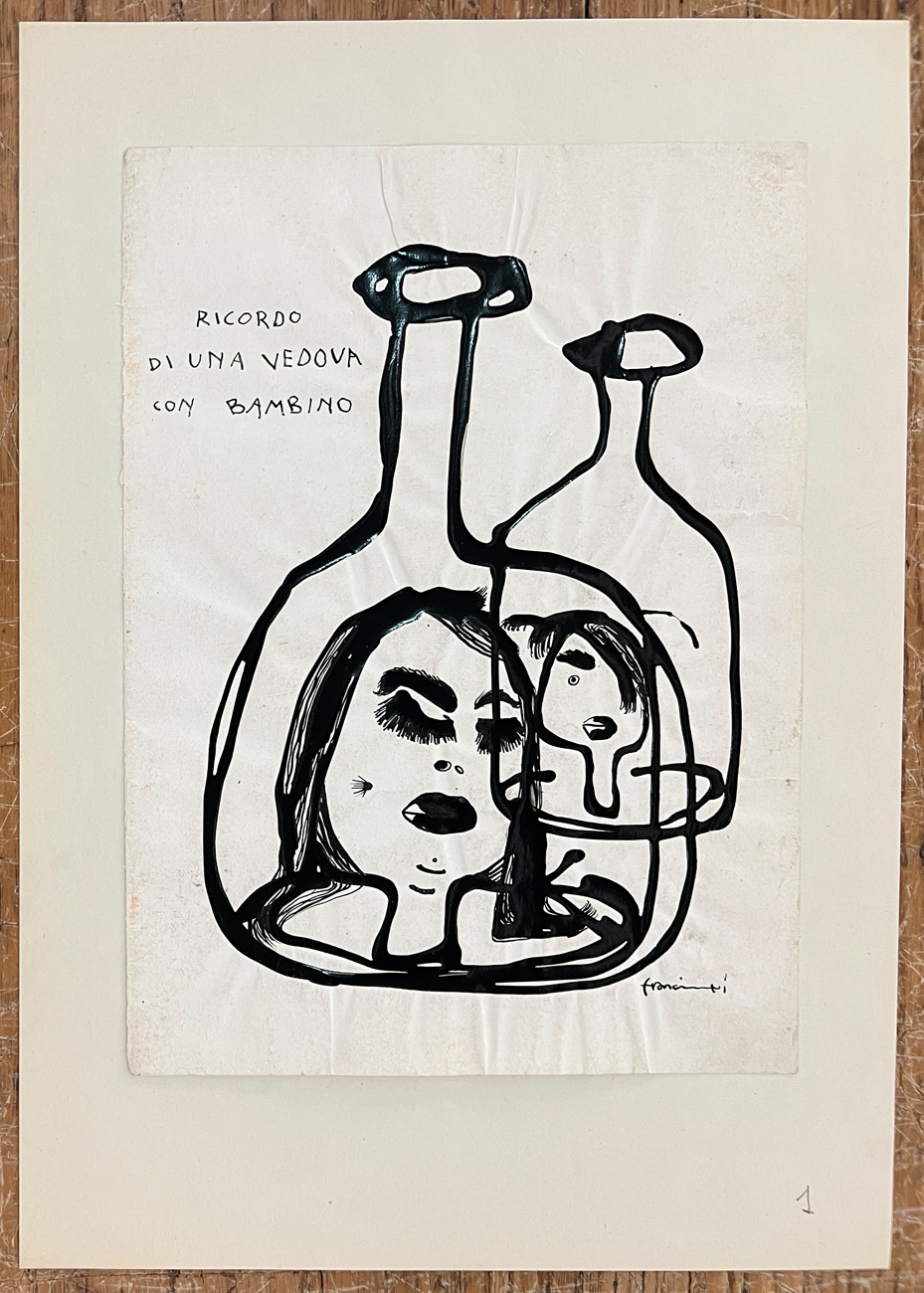 Cartella contenente 13 disegni di Duilio Francimei realizzati a china su carta