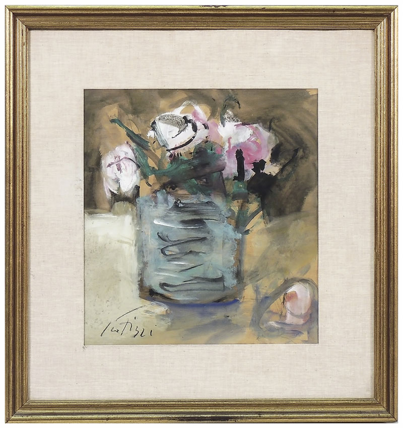 SERGIO SCATIZZI (1918-2009) Vaso con fiori tempera su carta, firmato, in...