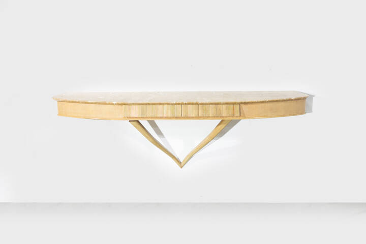 Struttura pensile in legno con due cassetti, piano in marmo.