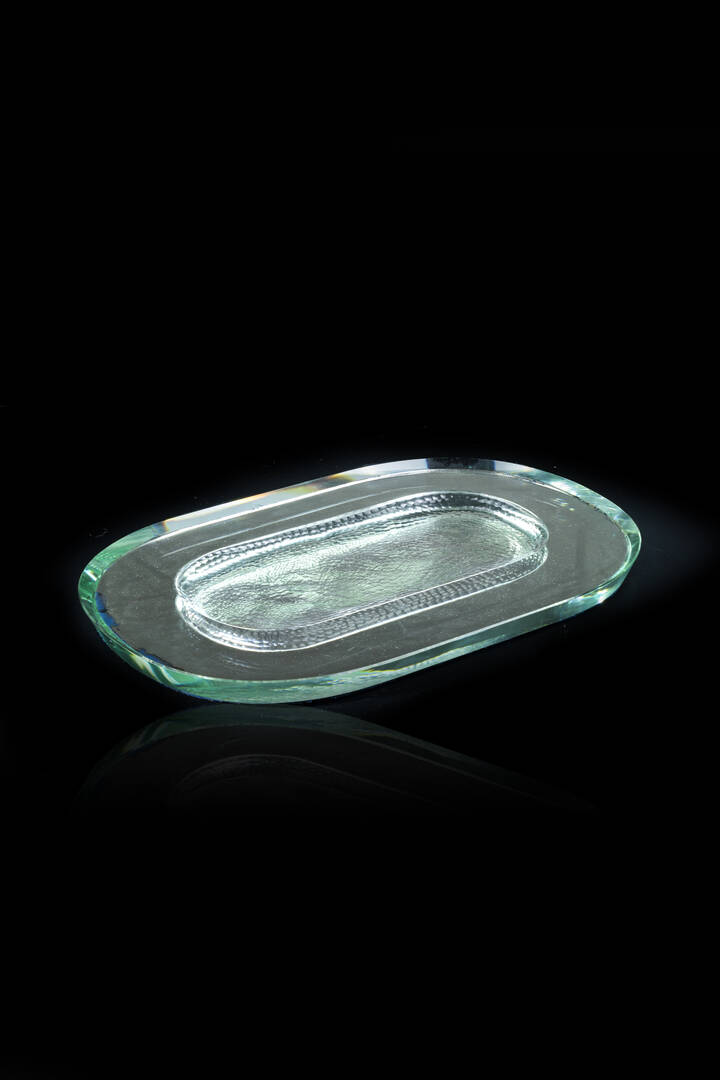 Vetro di forte spessore lavorato nella parte centrale.