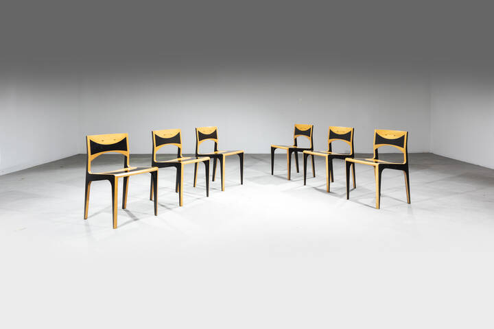 Lotto 171 | AFRA E TOBIA SCARPA<BR>Sei sedie mod. Damasco