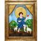 Il buon pastore h cm 50X40 in cornice h cm 62X52 pittura su vetro siciliana Arte dei "Pingi Santi", forma di espressione popolare radicata nella tradizione religiosa sviluppatasi in Sicilia a partire dal XVII secolo. Consiste nel dipingere immagini sacre sul retro di lastre di vetro seguendo un procedimento inverso rispetto alla pittura tradizionale: i dettagli si realizzano per primi e successivamente i fondi. Nasce così un'immagine brillante e luminosa destinata alla devozione privata delle abitazioni.