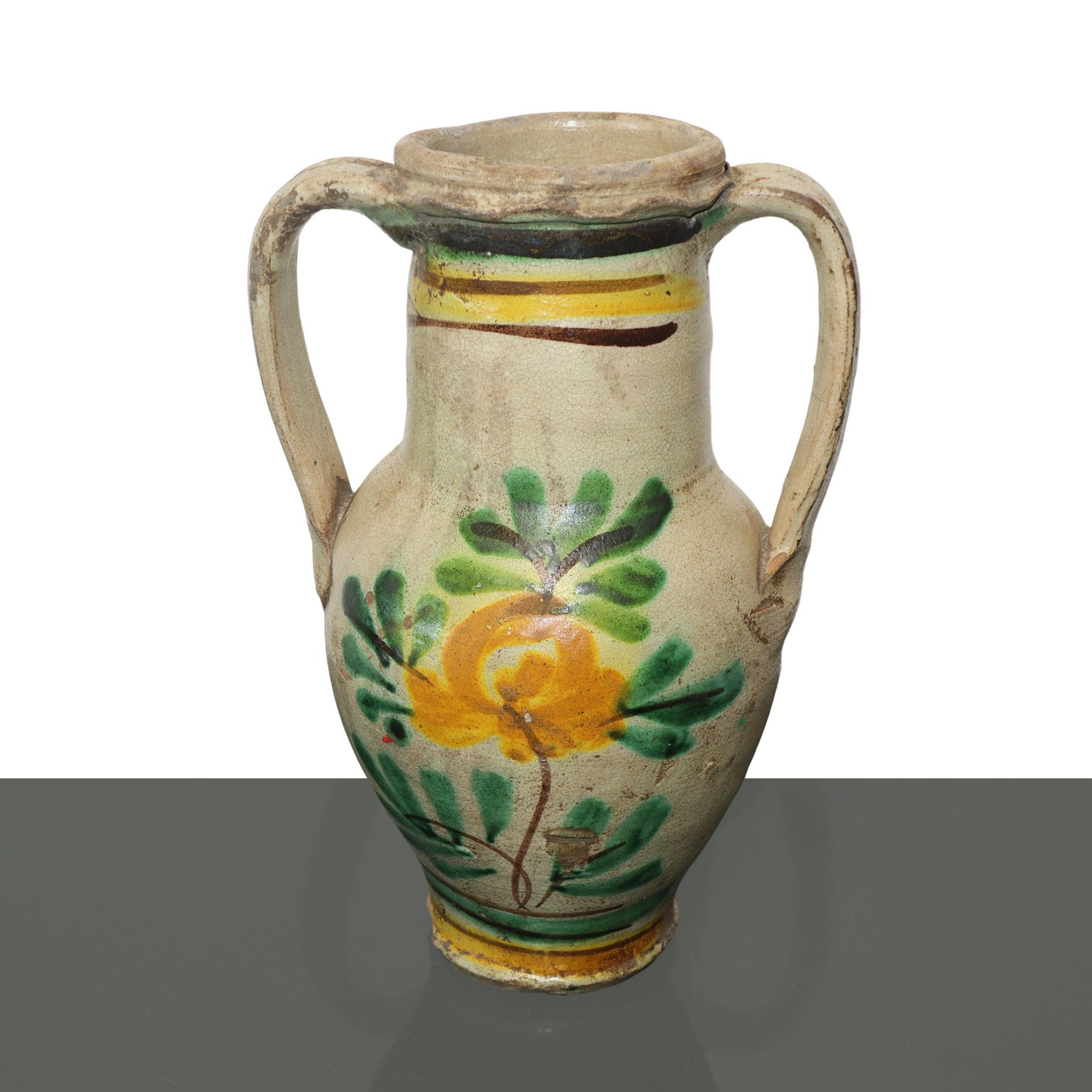 Lotto 32 | Anfora biansata in maiolica di Caltagirone con fiore policromo sul fronte