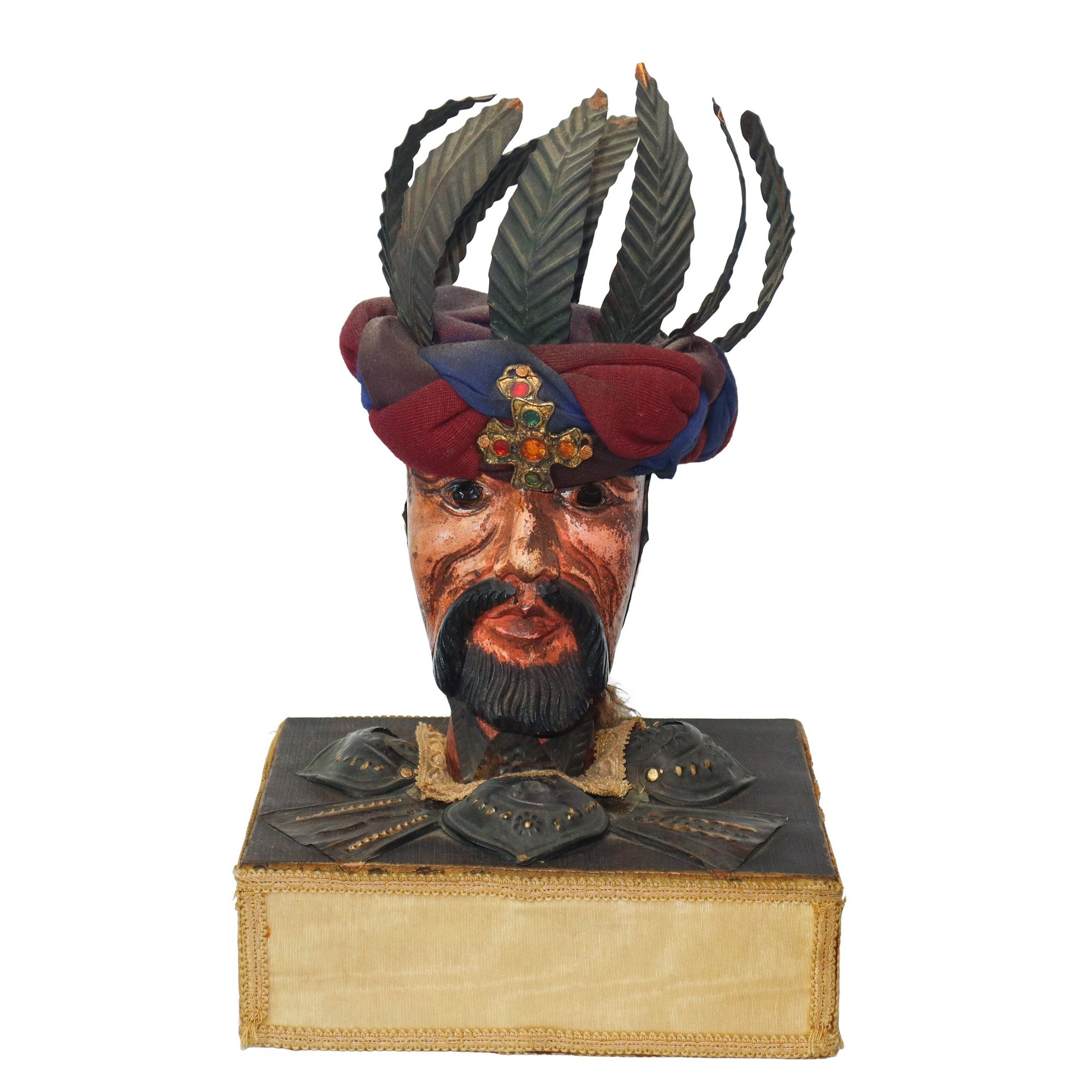Coppia di teste di pupi siciliani con base