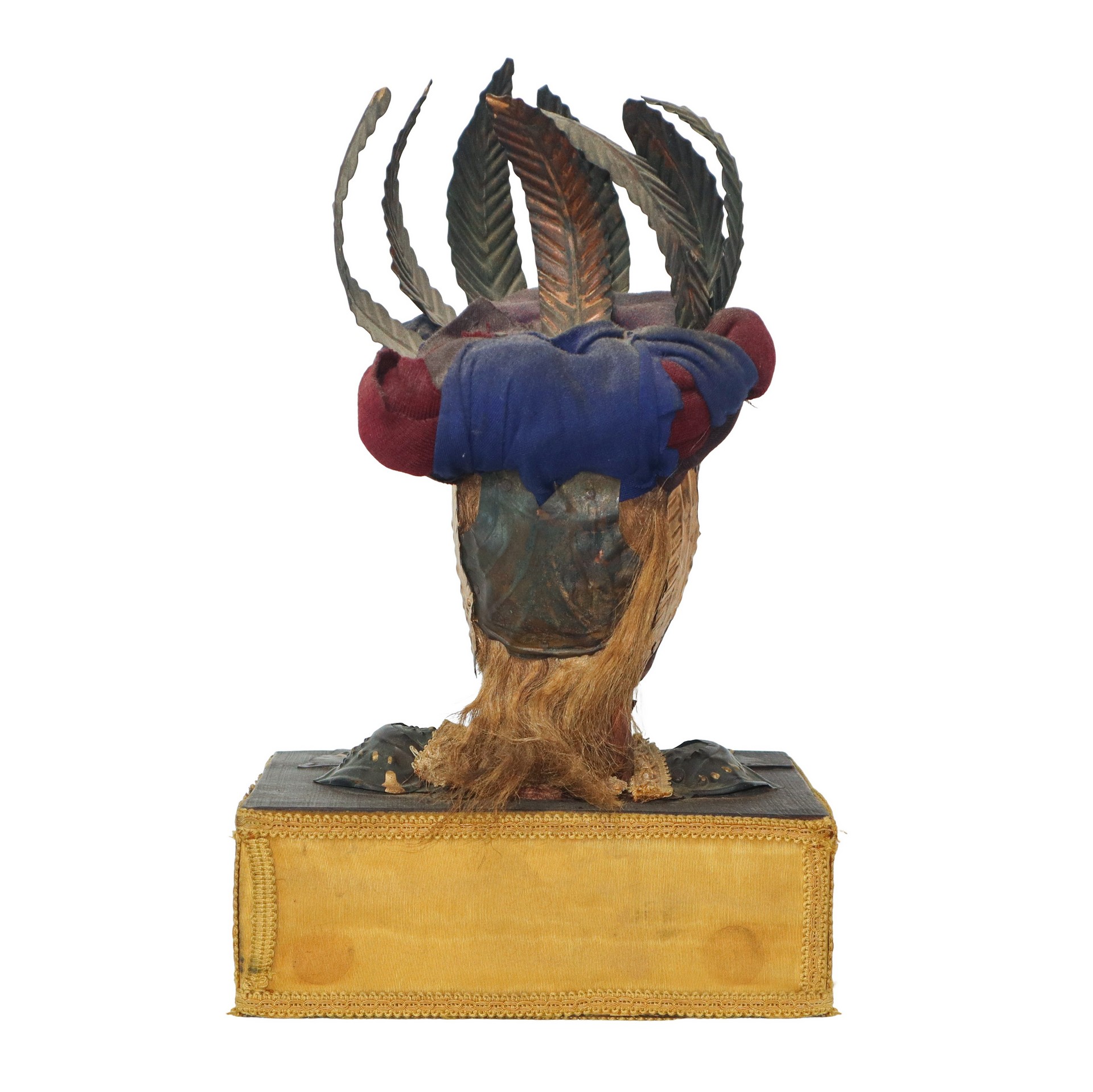 Coppia di teste di pupi siciliani con base h cm 45 h cm 54