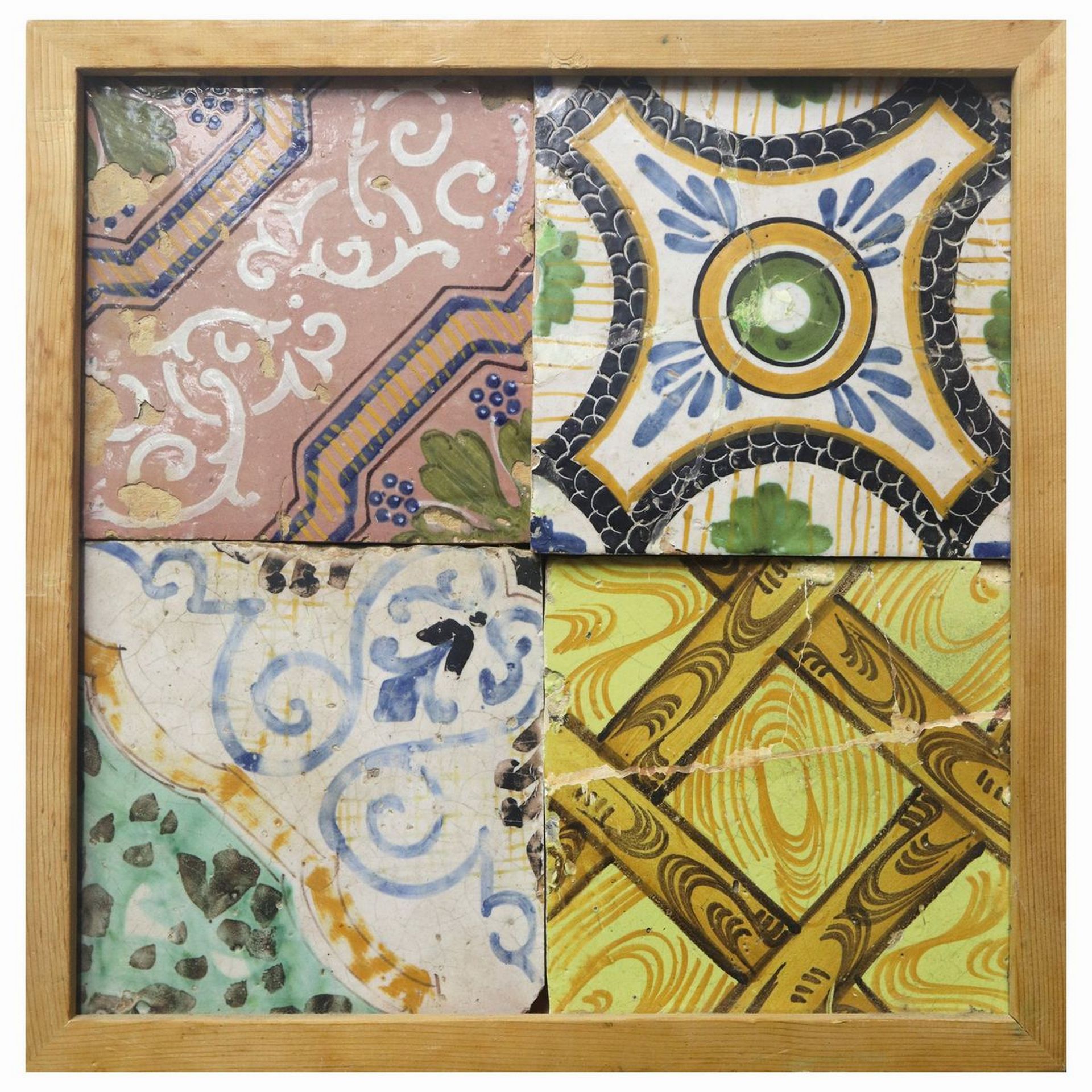 Composizione di N.4 maioliche in ceramica, primi 20° secolo cm 20 x cm 20 cad.