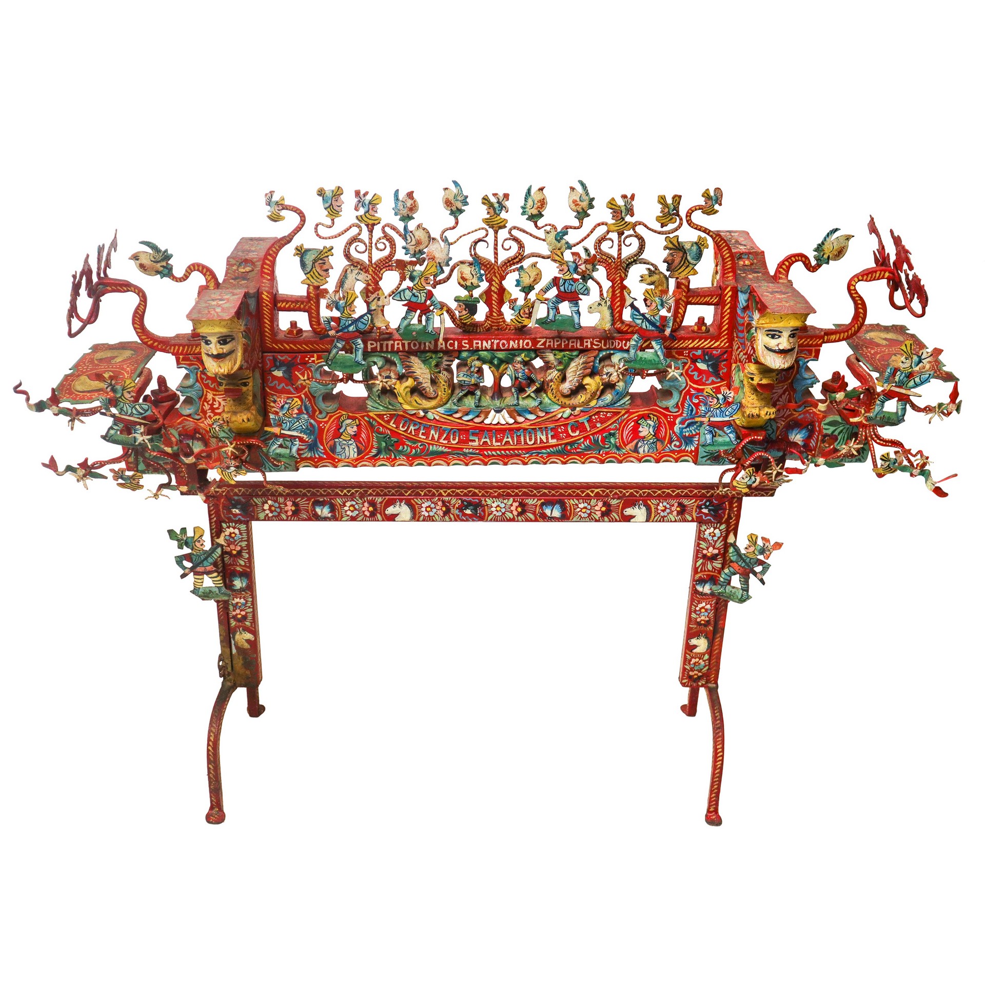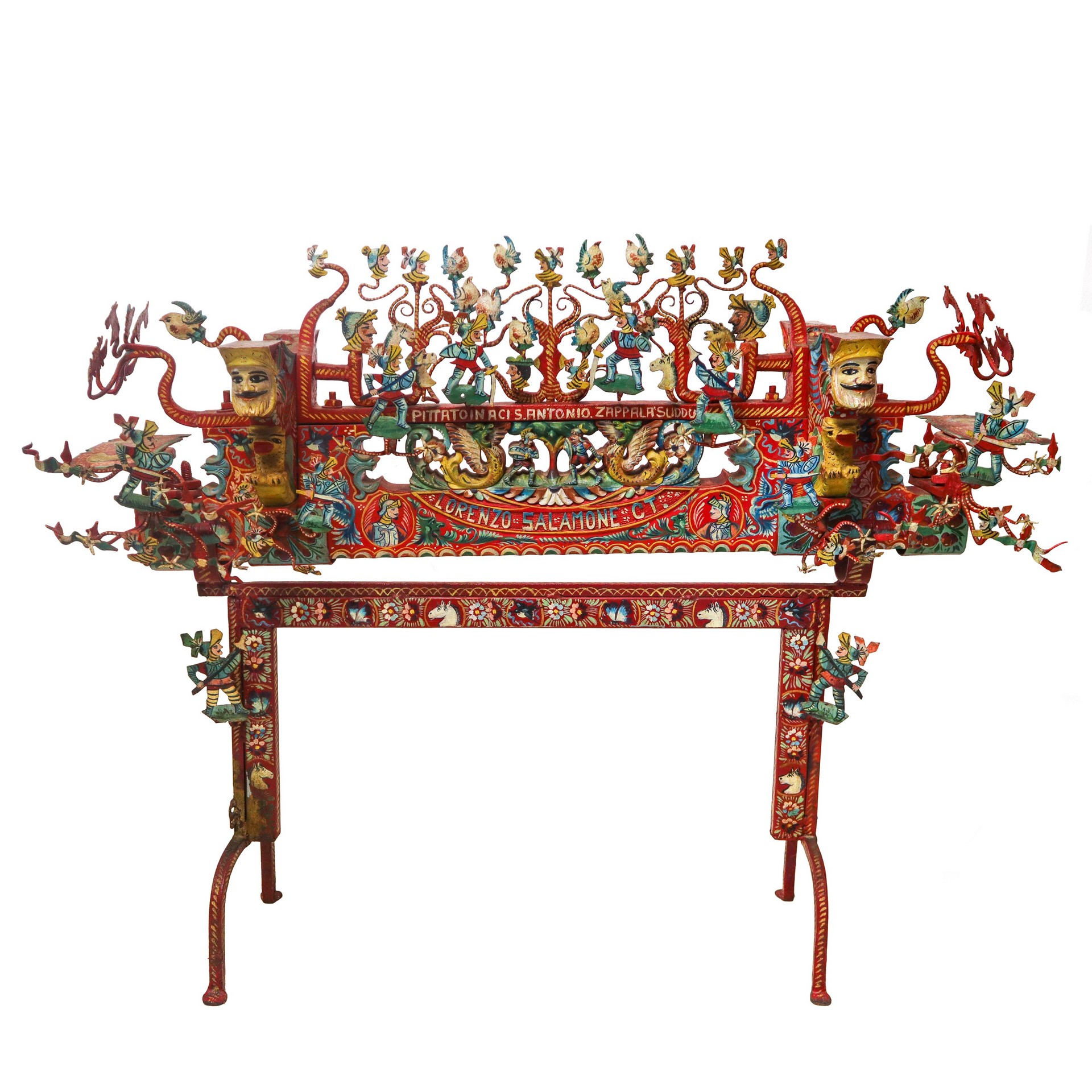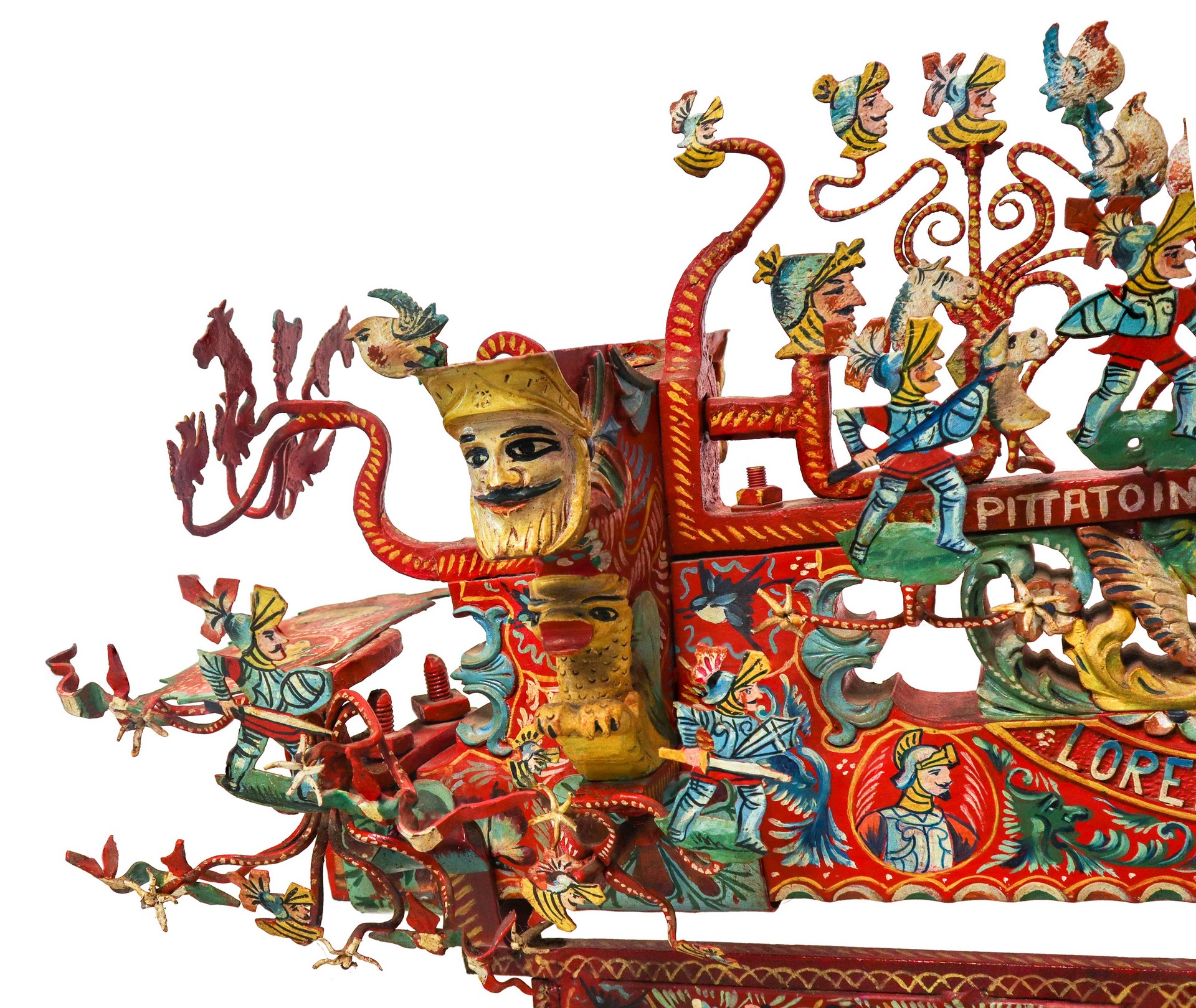 Lotto 60 | Lorenzo Salamone - Cascia di fuso dipinta policroma con paladini in rilievo su sostegno in ferro