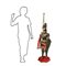 Pupo di Sicilia con armatura in metallo bronzato e vestiti e mantello rosso