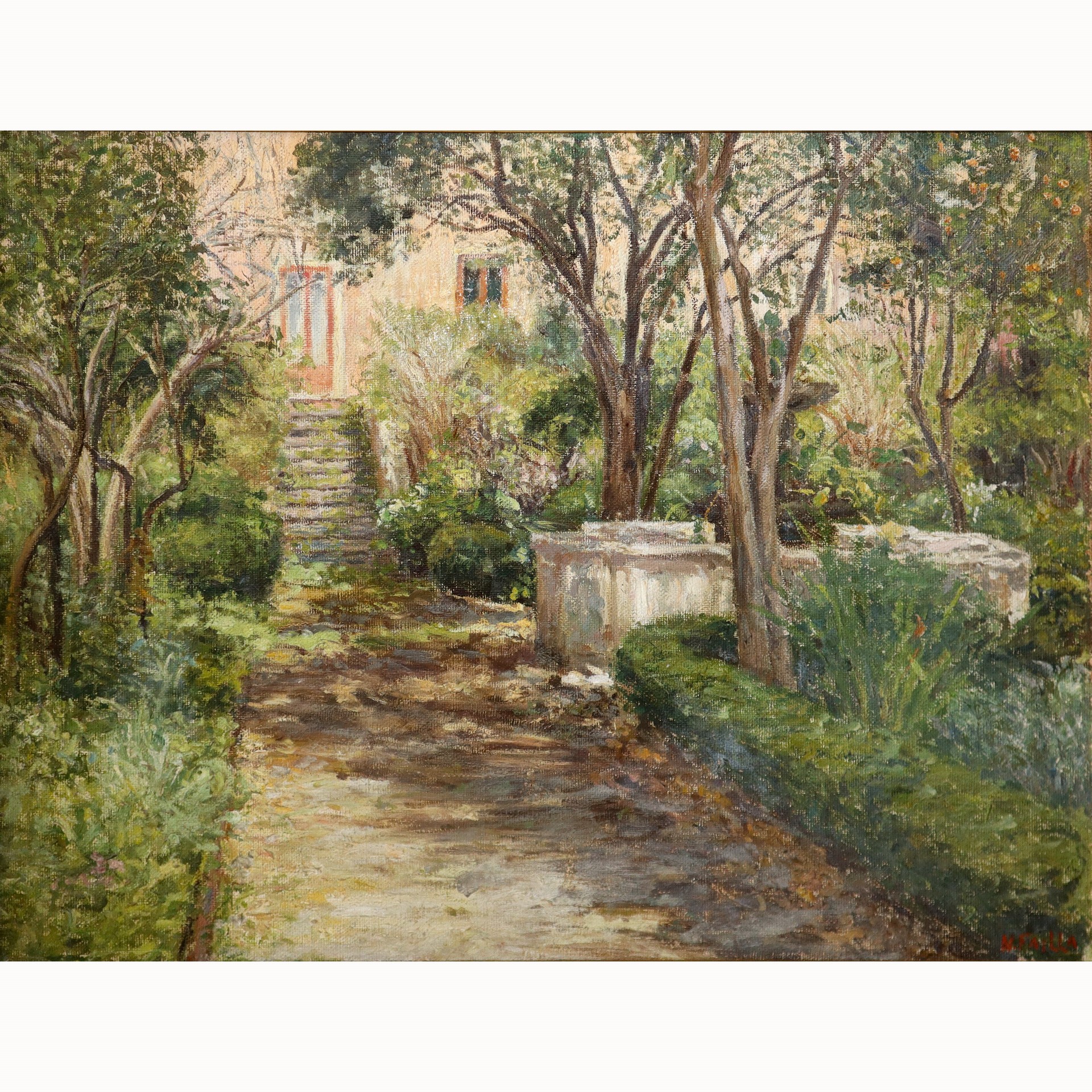 Giardino in villa siciliana h cm 47,5X63 in cornice h cm 56X72 Olio su tela Firmato in basso a destra N. Failla