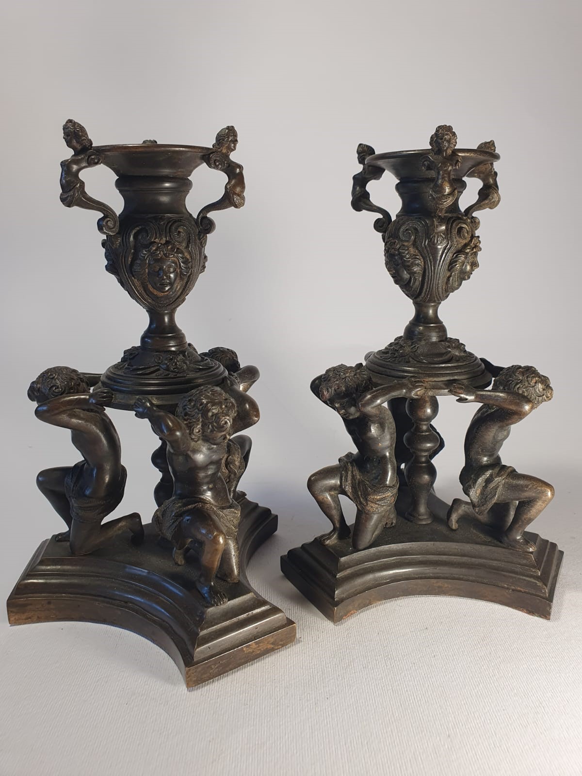 Coppia di candelieri con putti inginocchiati, da modelli rinascimentali