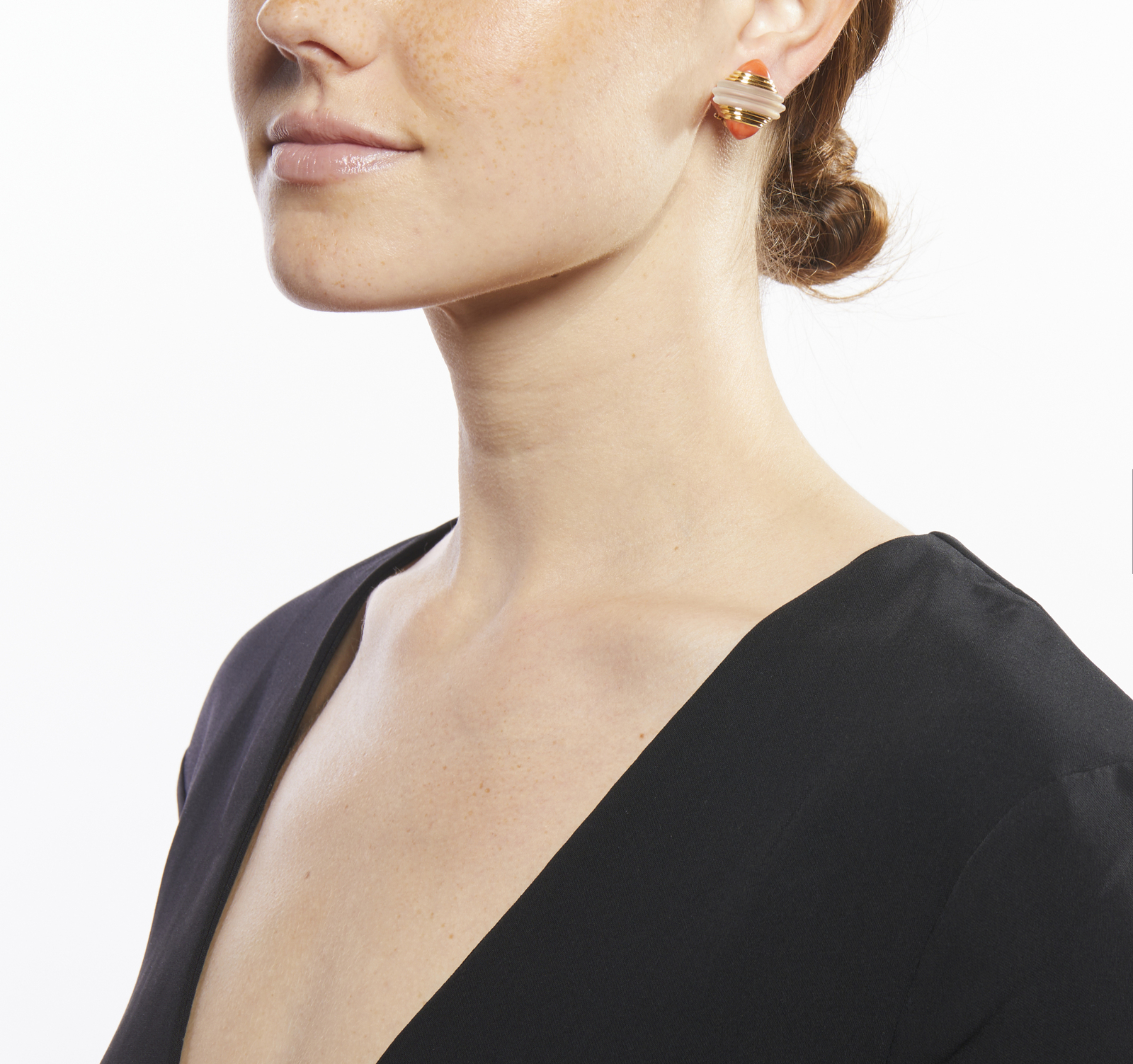 BOUCHERON - Orecchini in oro giallo 18k con cristallo Ialino e corallo.