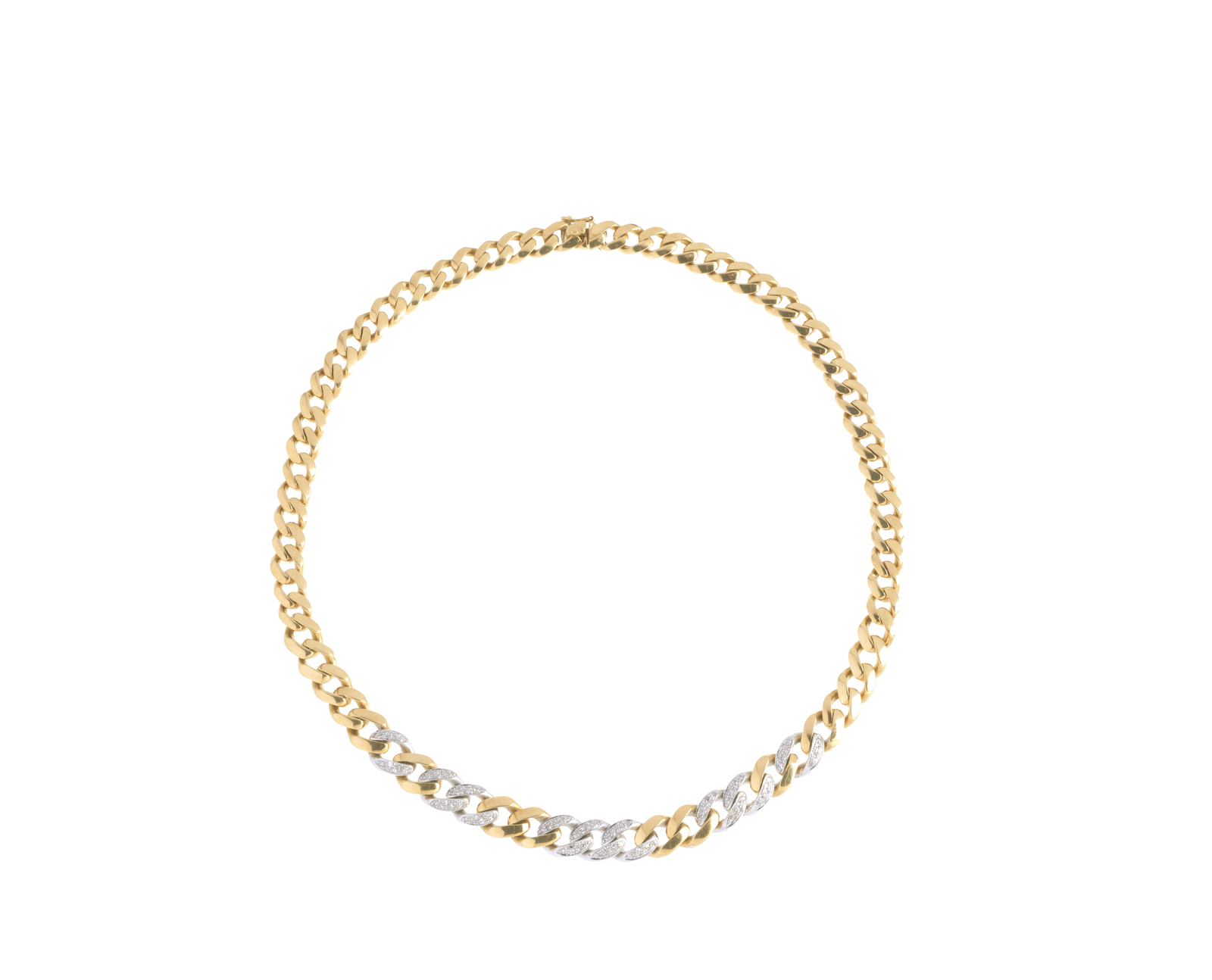 - Collana tipo groumette in oro bianco e giallo 18k con diamanti bianchi .