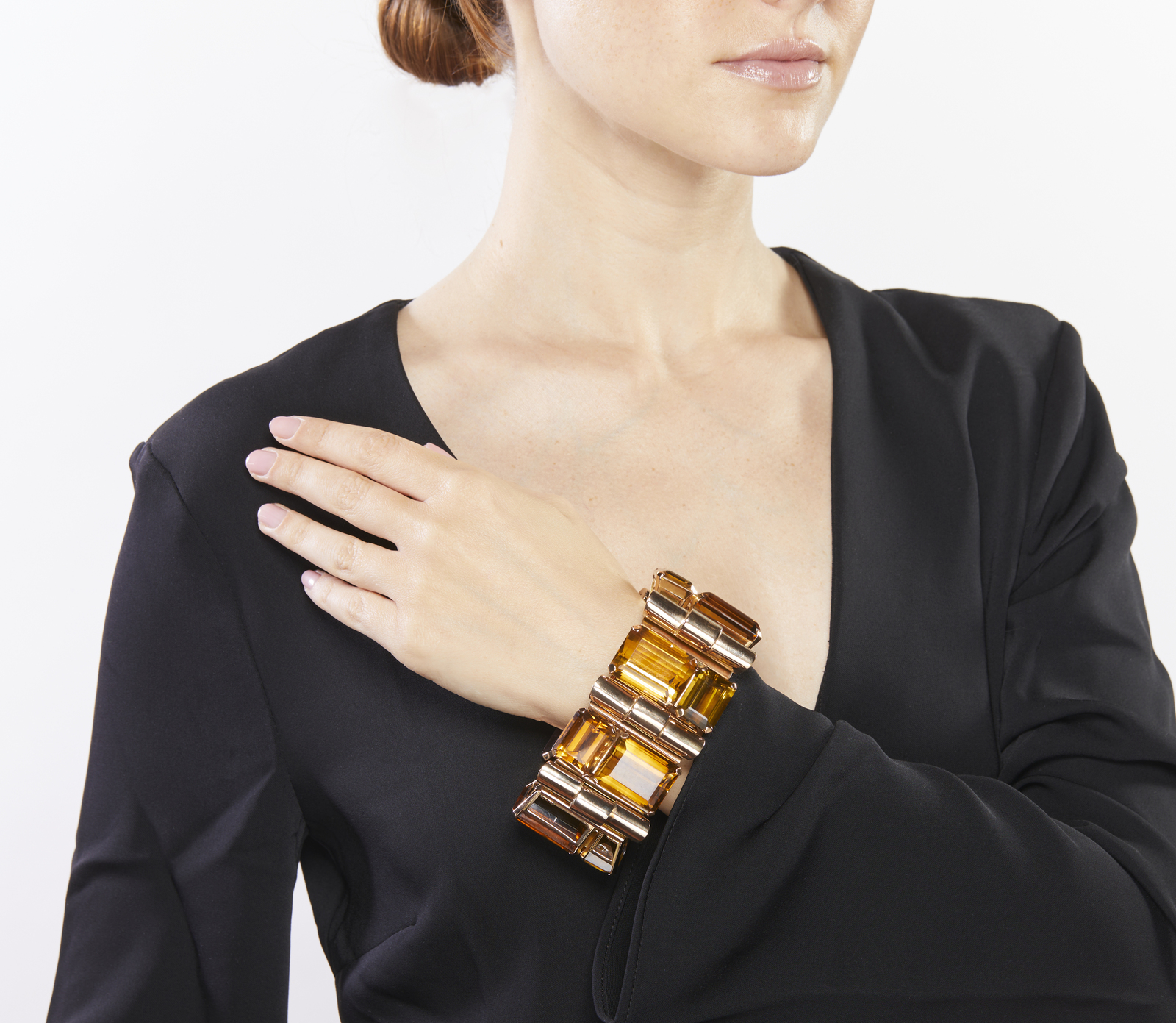 - Bracciale in oro rosa 18k con quarzi citrini.