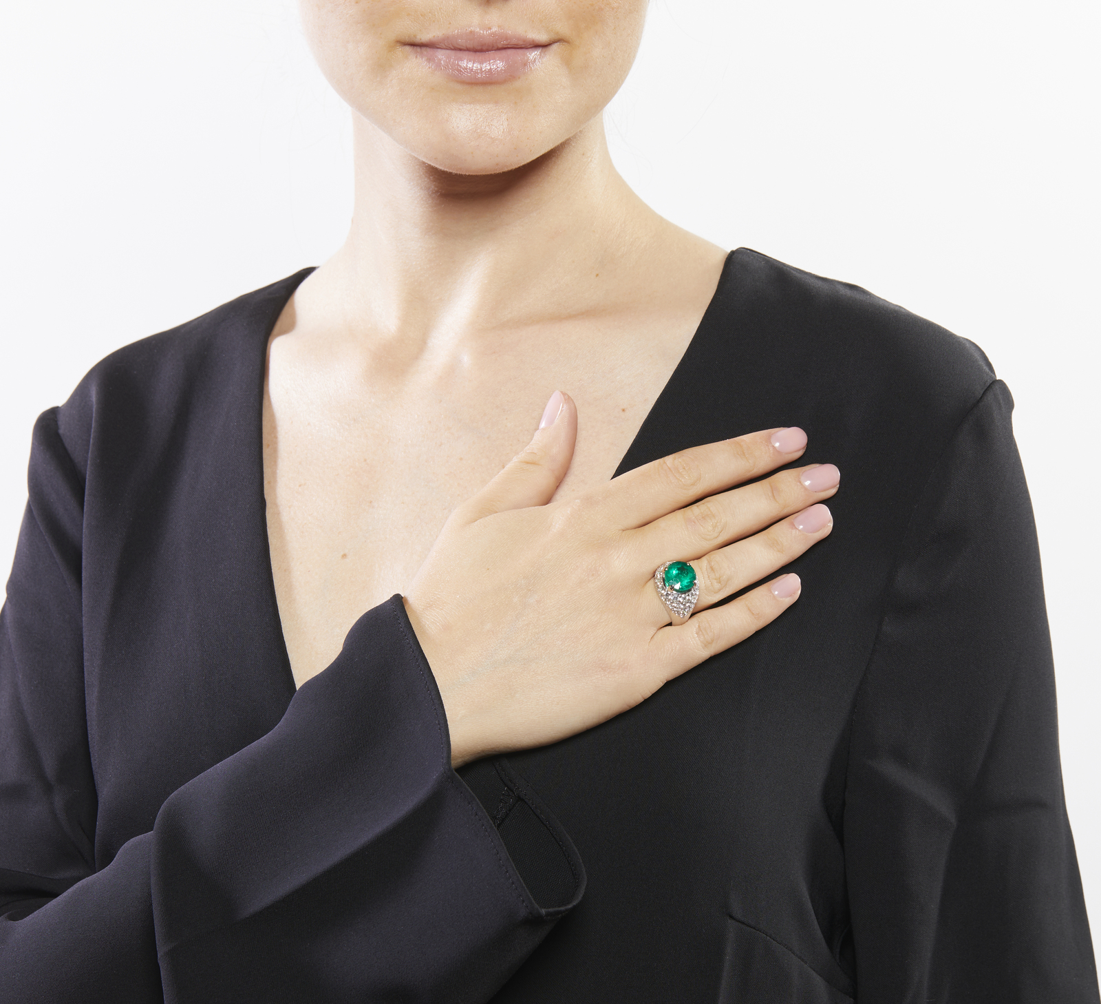 Anello oro bianco 18k con brillanti e smeraldi taglio a brillante di carati 4,37 . . . Con certificato IGN