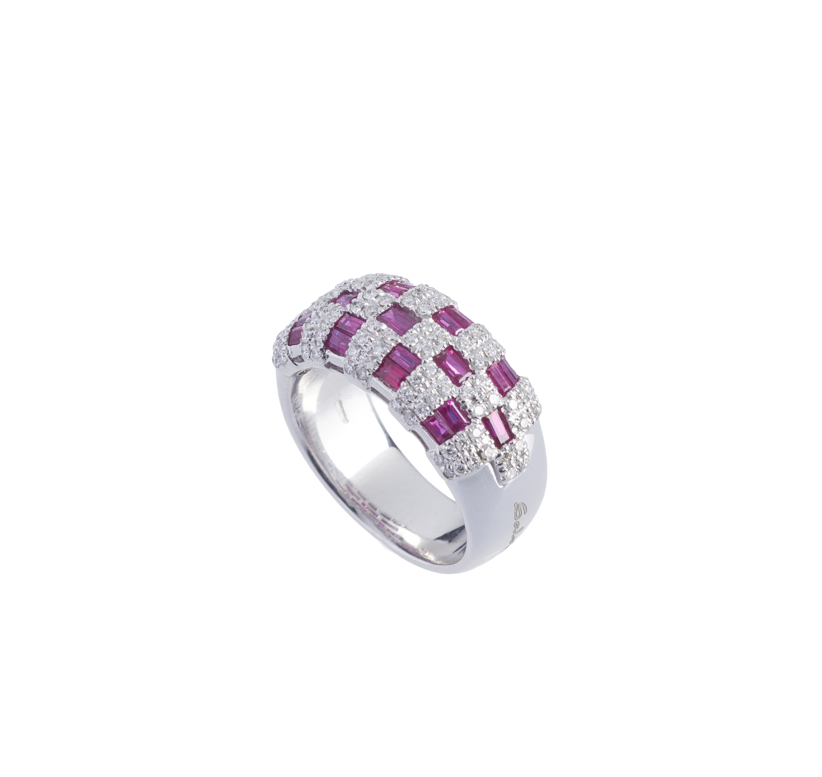 SALVINI Anello scacchiera con pavé di diamanti bianchi e rubini taglio a baguette. . . Diamanti: 0.55 ct. circa