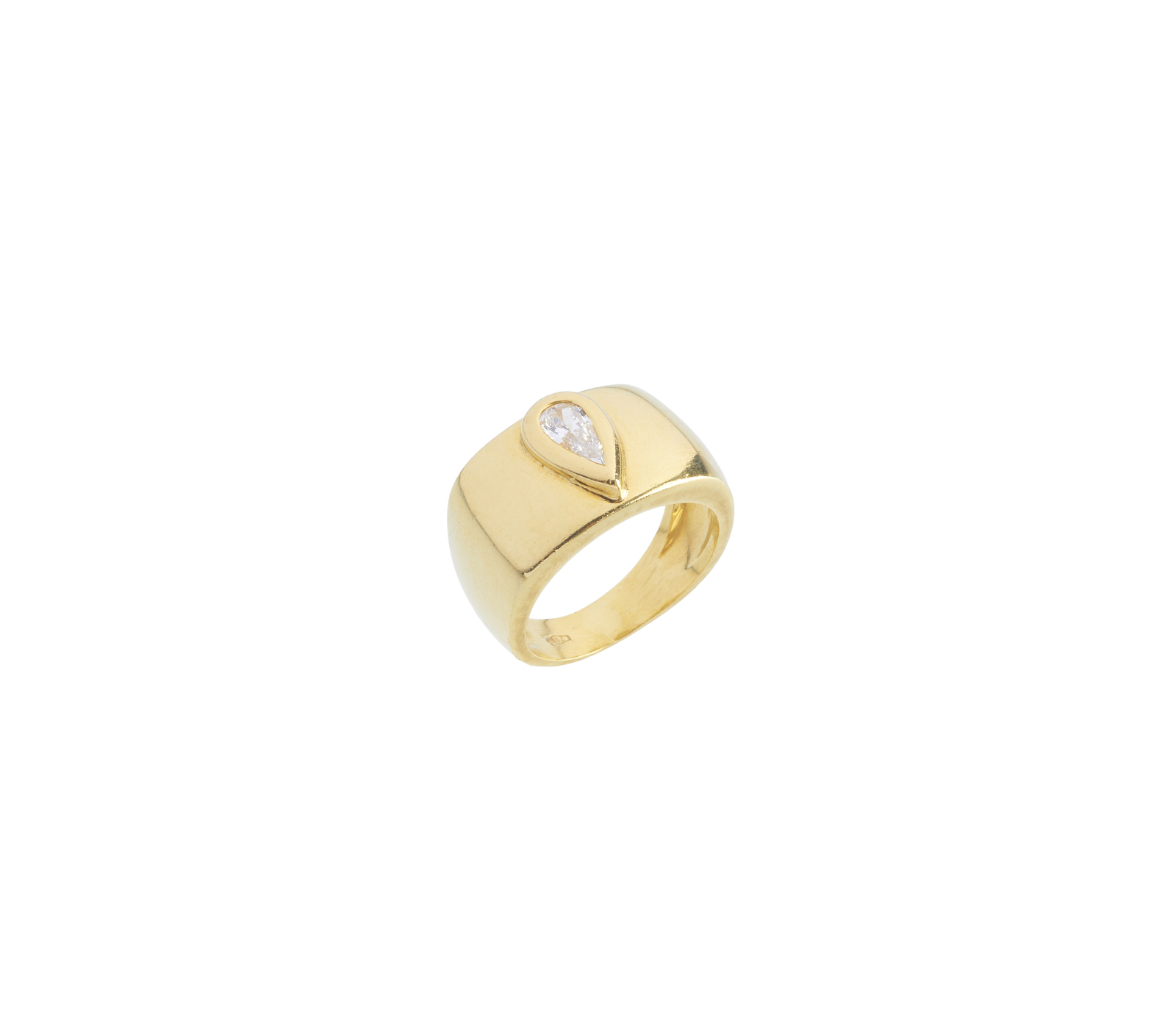 - Anello artigianale a fascia in oro giallo 18k con diamante taglio a goccia .