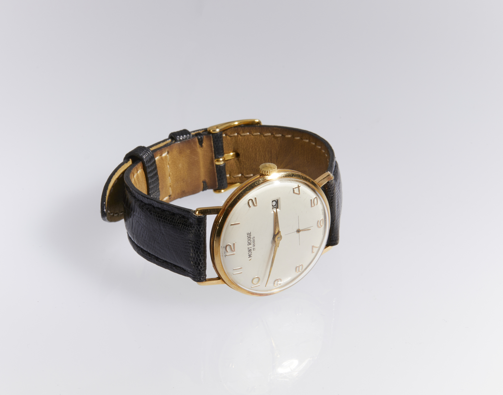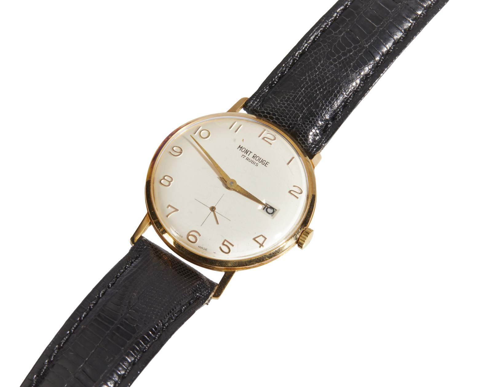 MONT ROUGE Orologio da uomo con cassa tonda in oro giallo 18k . . . Con indici arabi.