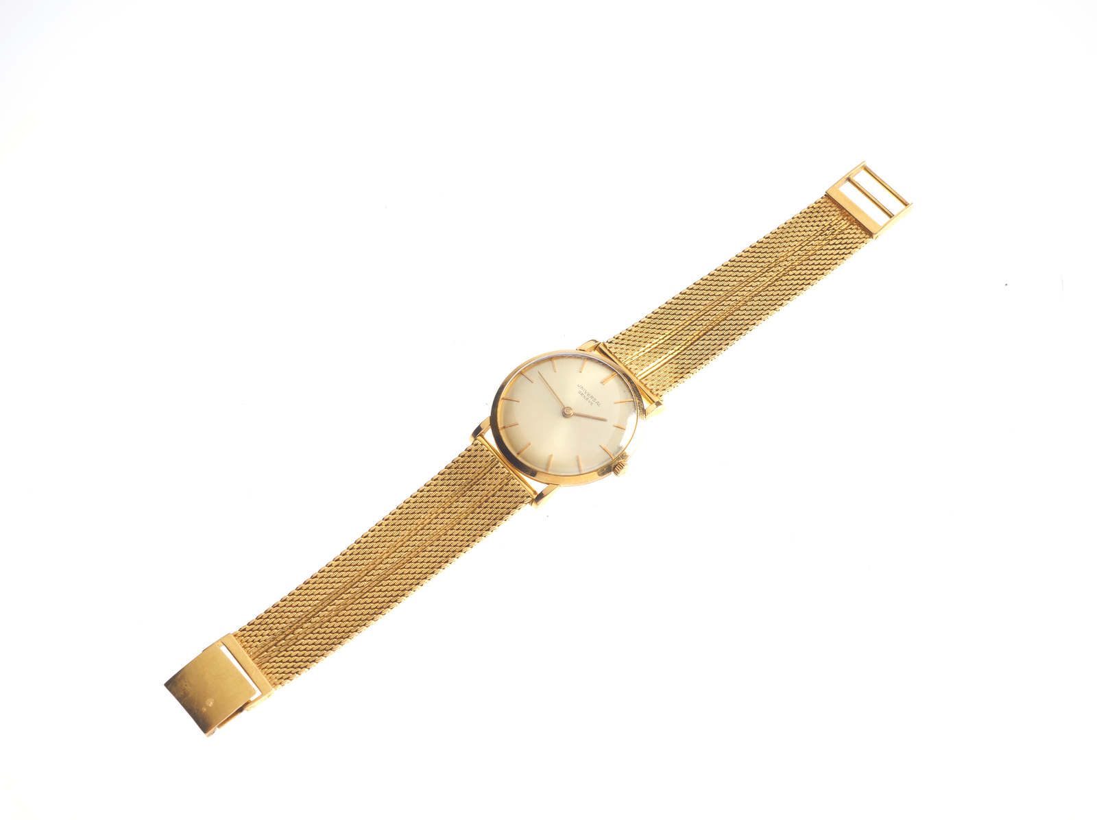 UNIVERSAL GENÈVE - Orologio in oro giallo 18k con bracciale a maglia tessita.