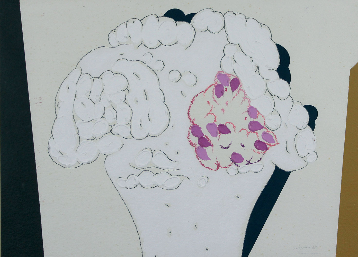 Pozzati Concetto A che punto siamo con i fiori, 1989 tecnica mista su cartone, cm. 75,5x56,5 firmata e datata in basso a destra, certificato di autenticità e archiviazione dell'artista su fotografia datato 23/11/1990 con timbro della Galleria Pace di Milano
