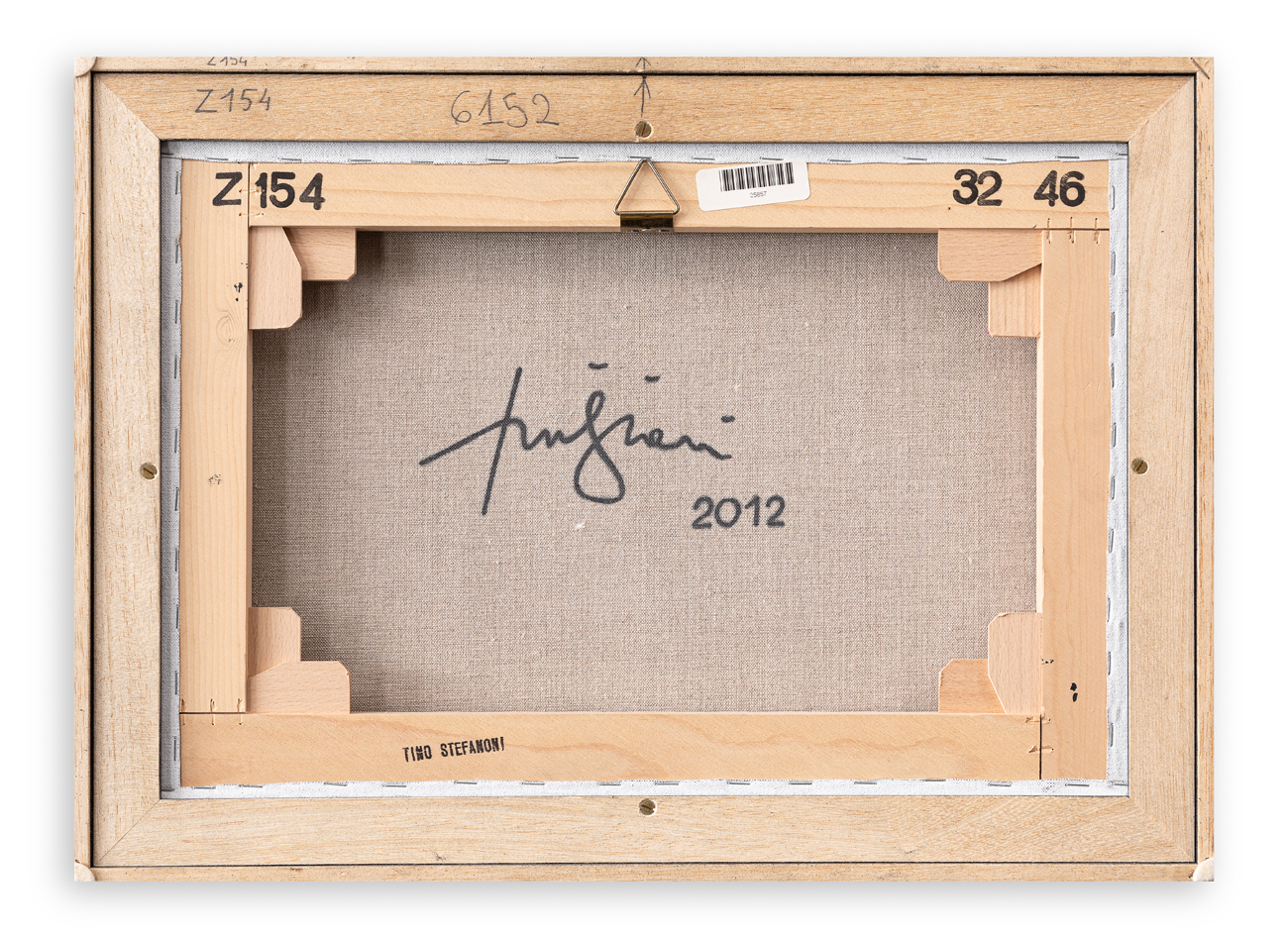 Firma, titolo, datazione e timbri dell'Artista al retro