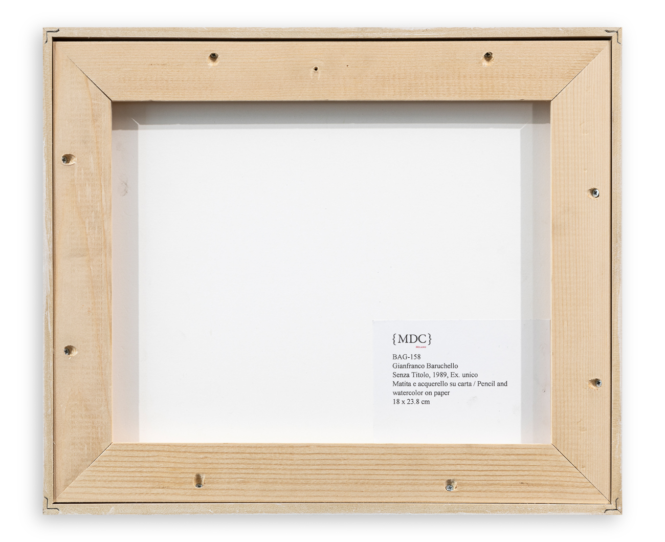 Etichetta della Galleria Massimo De Carlo (MI) al retro