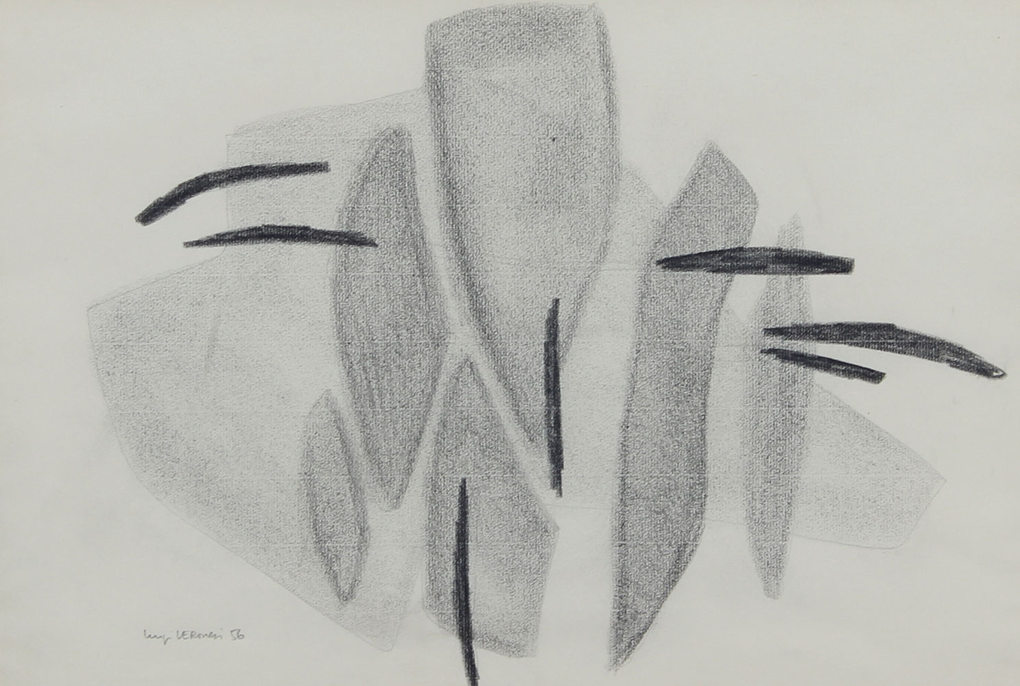 Veronesi Luigi Senza titolo, 1956 tecnica mista su cartoncino, cm. 28x40,5 firmata e datata in basso a sinistra, etichetta e timbro Galleria Artecentro di Milano al retro