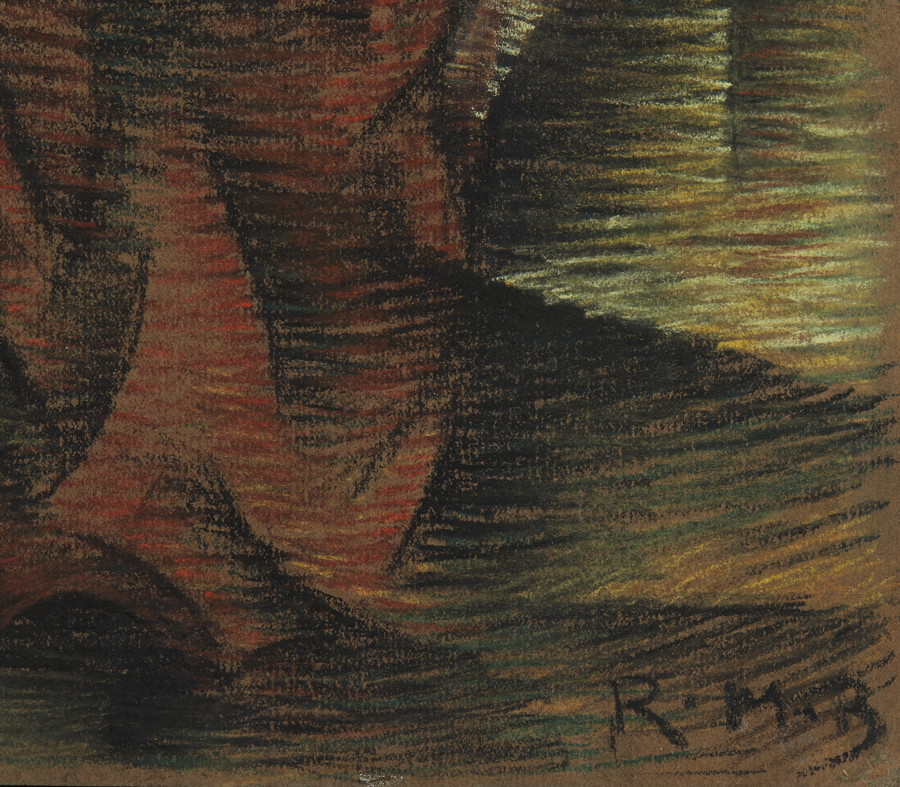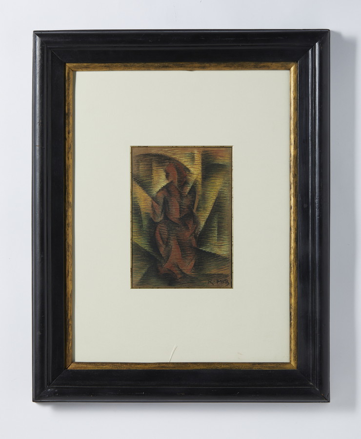 BALDESSARI ROBERTO MARCELLO IRAS (1894 - 1965) II STUDIO PER FIGURA + STAZIONE (1916 circa). Pastelli colorati su carta pesante. Cm 20,40 x 28,00. monogramma