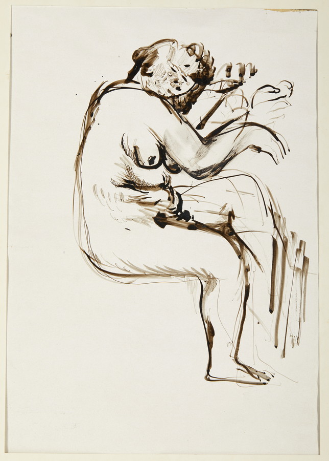 MARINI MARINO (1901 - 1980) NUDO SEDUTO . 1942. China su carta. Cm 27,00 x 34,00. sul retro: timbro ed etichetta Galleria del Milione, Milano