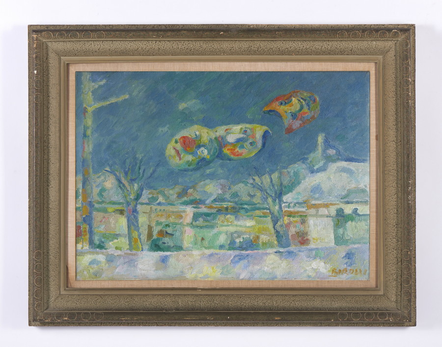 BIROLLI RENATO (1905 - 1959) MASCHERE VOLANTI. Olio su tela. Cm 70,00 x 50,00. firma