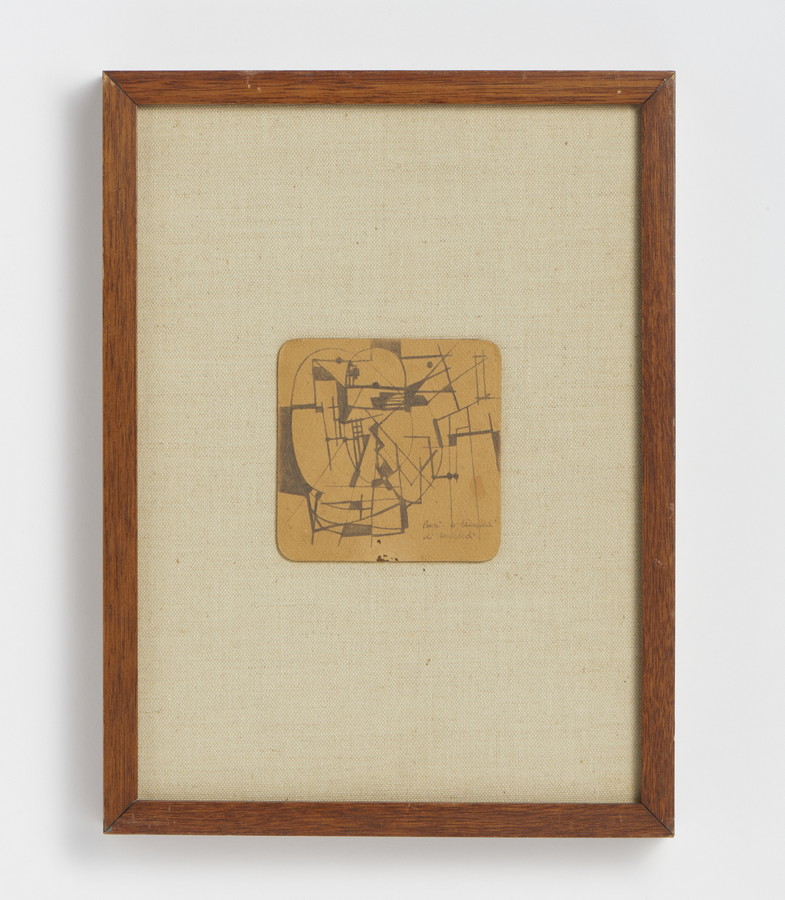 BURRI ALBERTO (1915 - 1995) A CLEMENTI DI MARTEDI'. Matita nera su cartoncino di sottobicchiere. Cm 9,30 x 9,30. firma e dedica ad personam
