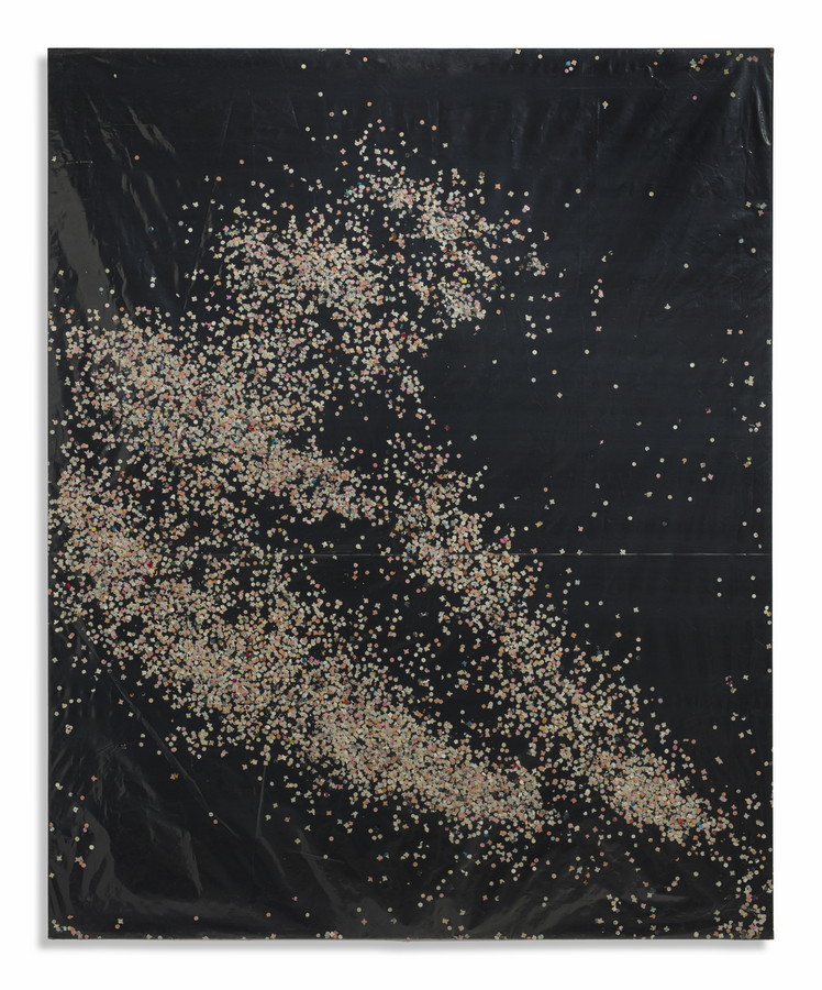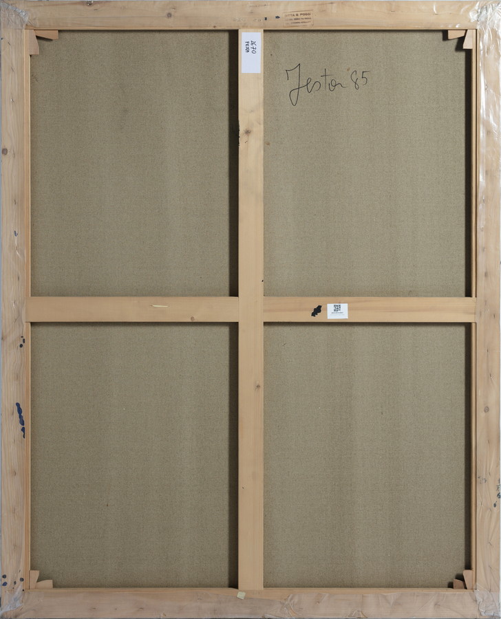 FESTA TANO (1938 - 1988) SENZA TITOLO. 1985. Acrilico e coriandoli su tela . Cm 130,00 x 160,00. sul retro: firma e data