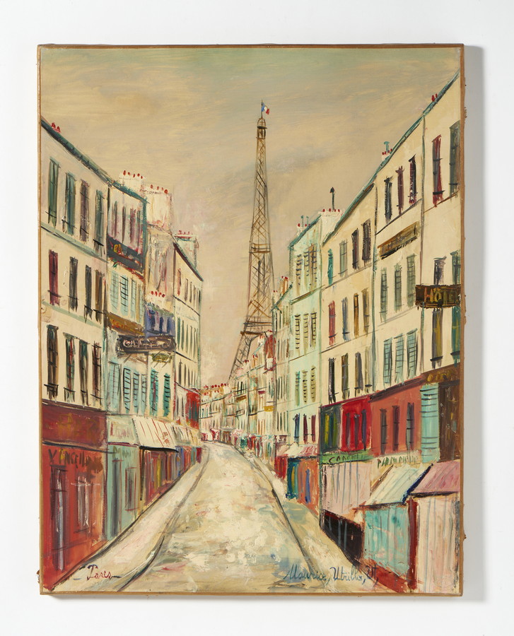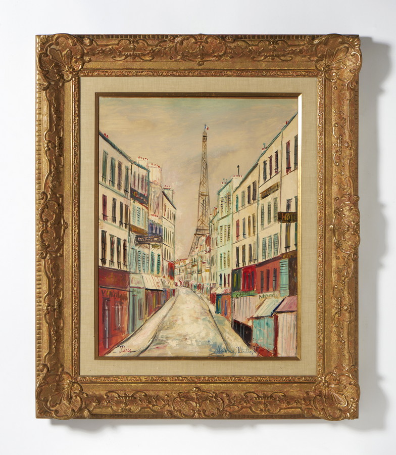 UTRILLO MAURICE (1883 - 1955) LA TOUR EIFFEL A PARIS. gouache su carta applicata su tela. Cm 48,00 x 63,00. firma, data e luogo