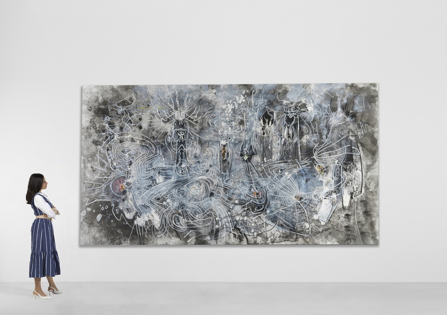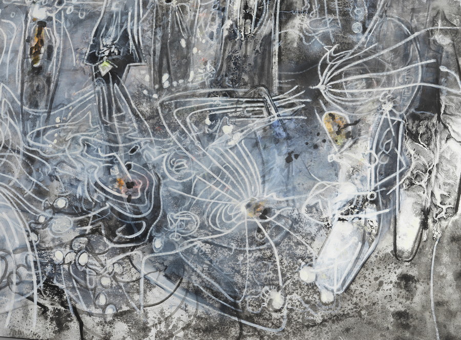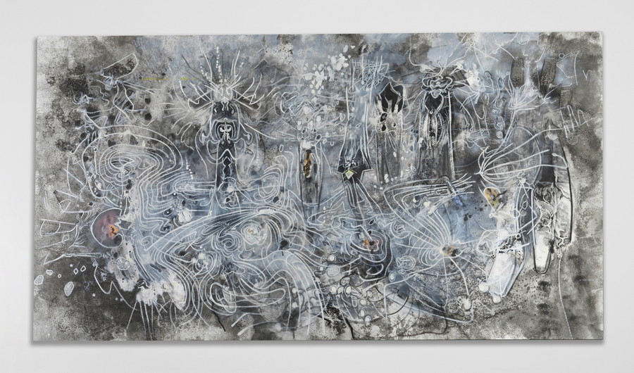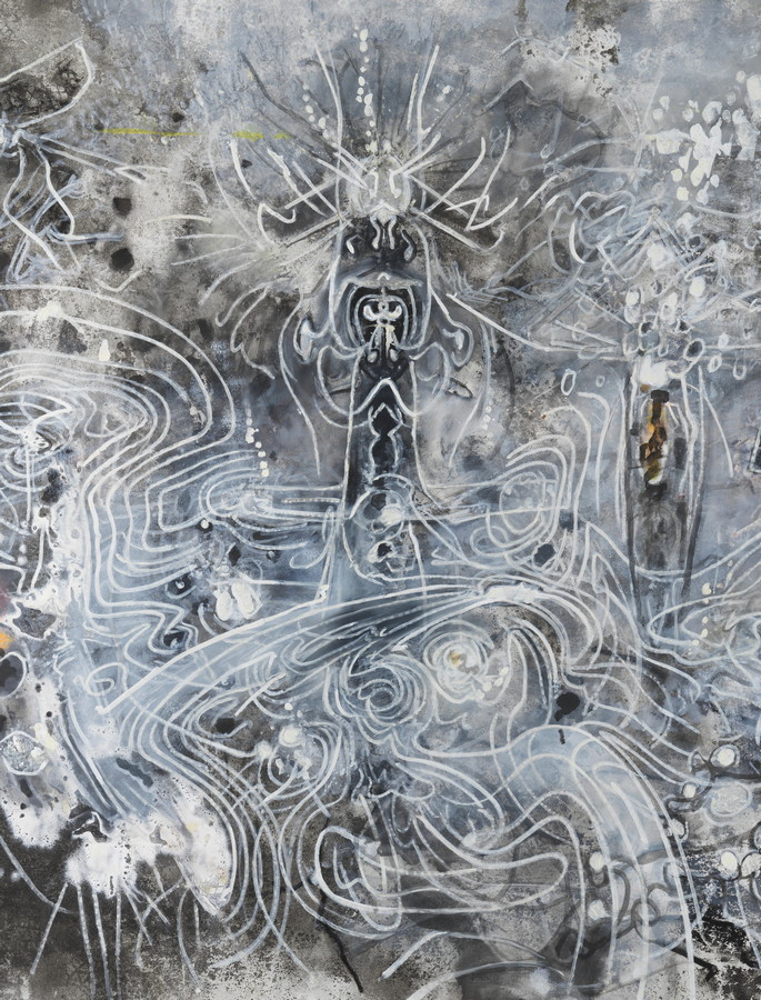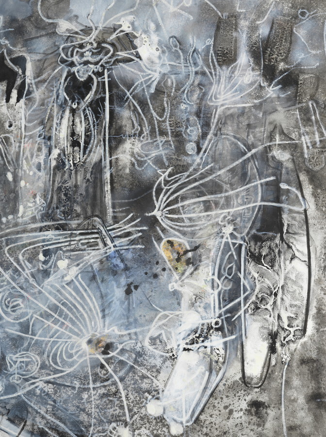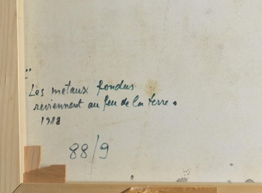 MATTA ROBERTO SEBASTIAN ANTONIO (1911 - 2002) LES METAUX FONDUS REVIENMENT AU FEU DE LA TERRE . 1988. Olio su tela. Cm 480,00 x 260,00. sul retro: data e titolo