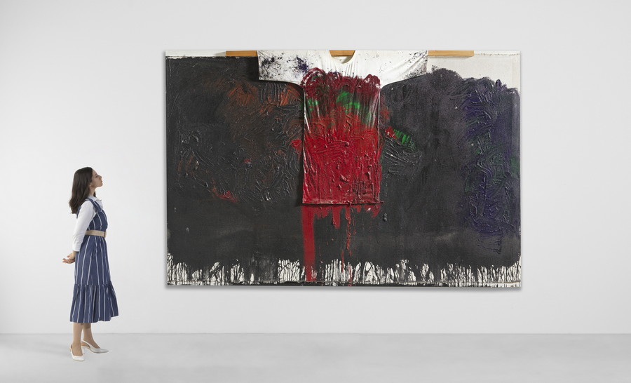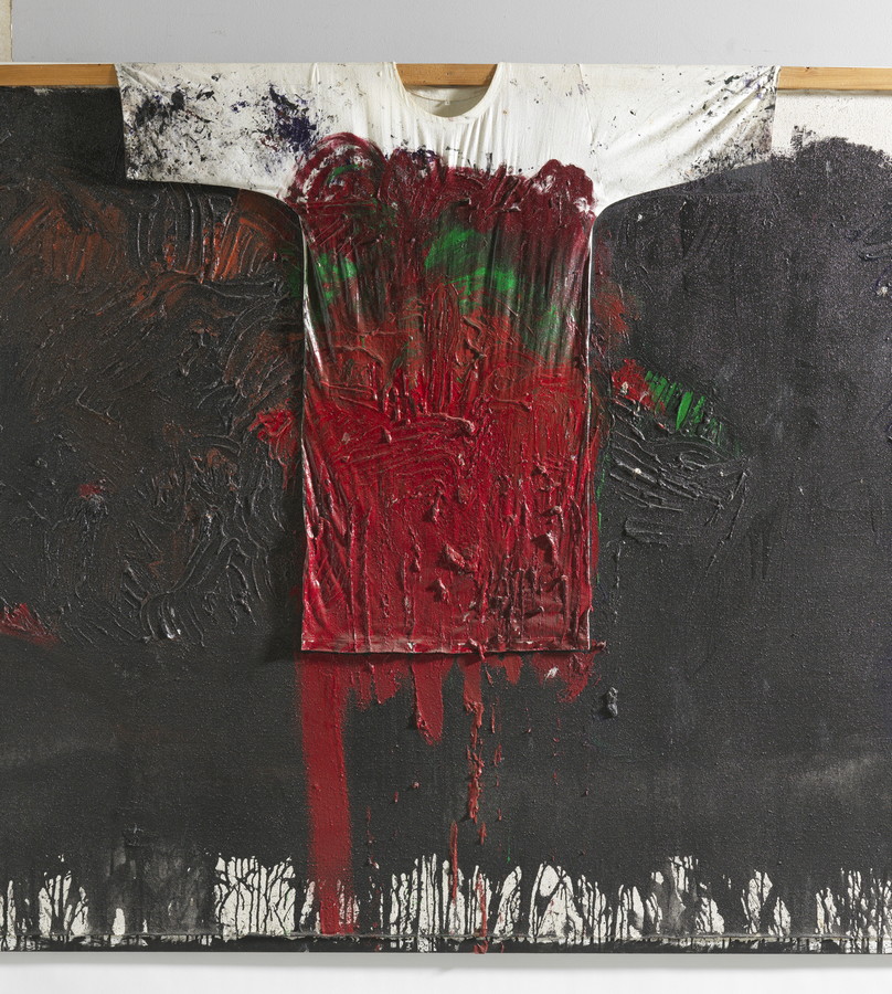 NITSCH HERMANN (1938 - 2022) SENZA TITOLO (SCHUTTBILD). 2005. Pittura acrilica su tela juta e su camice. Cm 300,00 x 200,00. sul retro: firma e data