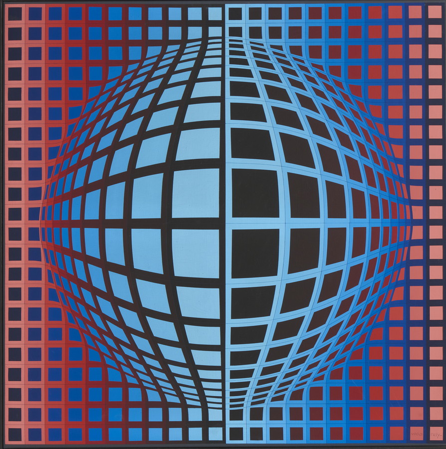 VASARELY VICTOR (1906 - 1997) VEGA-P. Tecnica mista su tela. Cm 80,00 x 80,00. firma