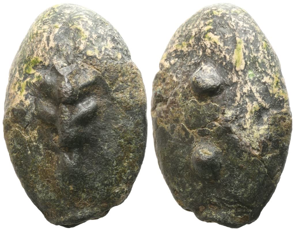 Mint: possibly Volsinii. Club; Rv. Two pellets. Vecchi 199; HN Italy 54. For a tentative identification of this issue's minting authority, cf. M. Crawford 'The oval series of aes grave' in CH 9 (2002), pp. 269-270. Good very fine.