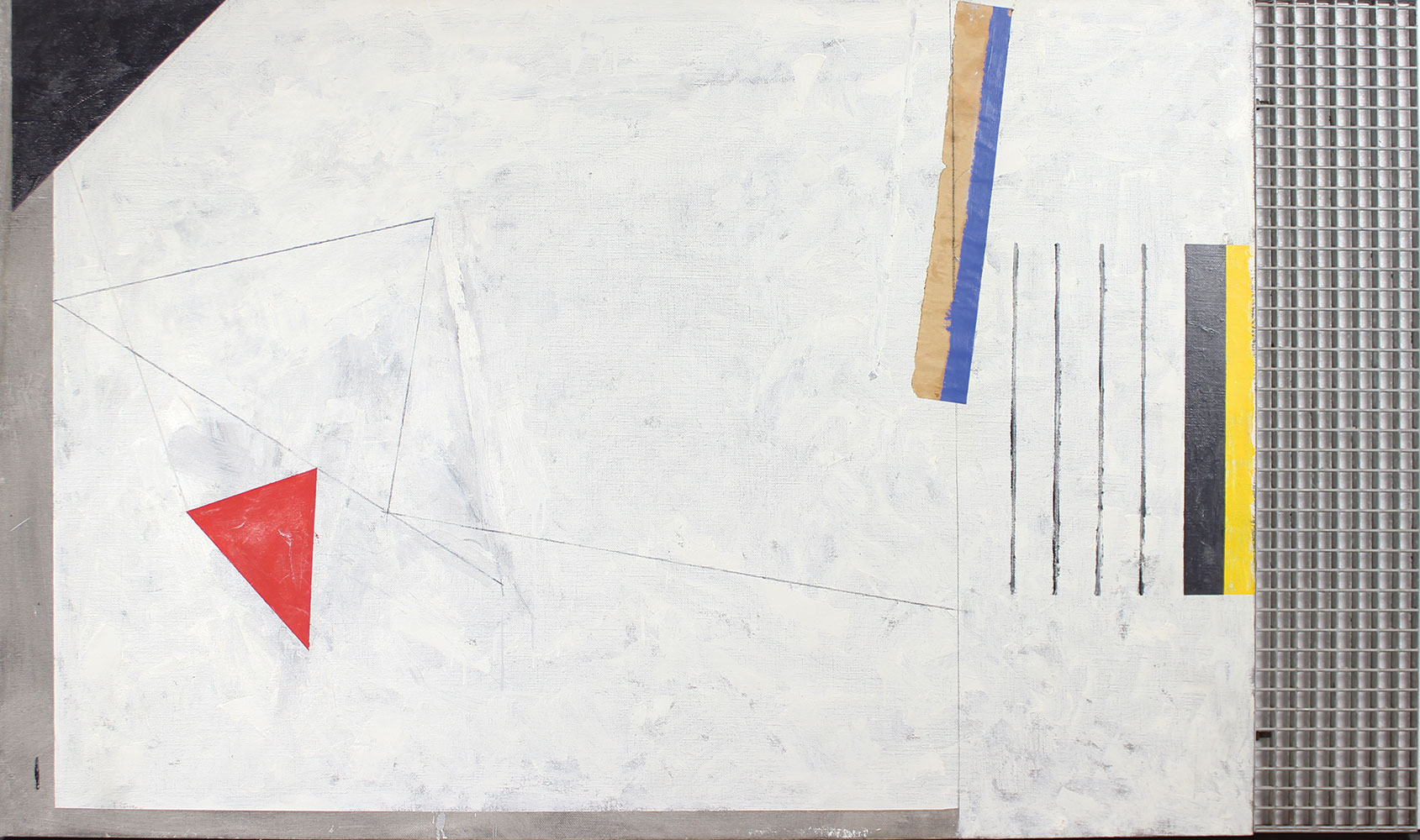 Pardi Gianfranco Senza titolo olio su tela e griglia metallica, cm. 100x170 firmato al retro