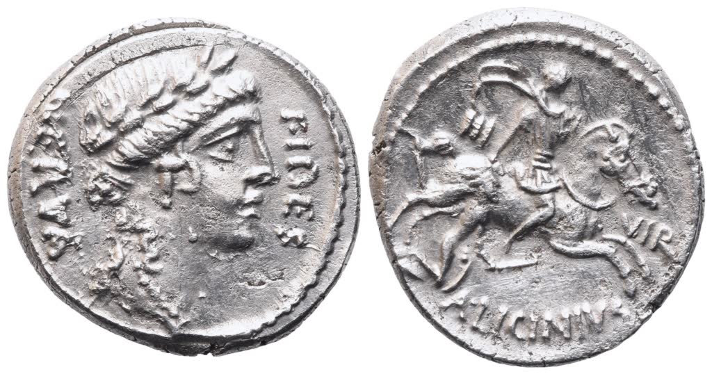 A. Licinius Nerva, Denarius, Rome, ca. 47 BC; AR (3,93 g; 18 mm; 10 h)